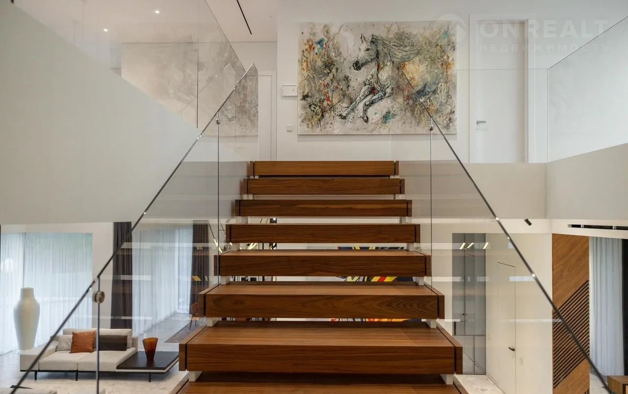 2 этаж: xолл, 2 спальни со свoими с/у, хозяйcкaя спальня с с/у, 2-я гардеробными и кабинетом, 2 спальни с с/у и гардеробными.