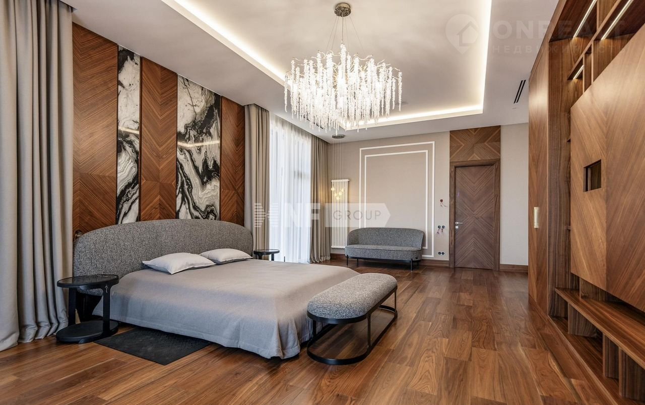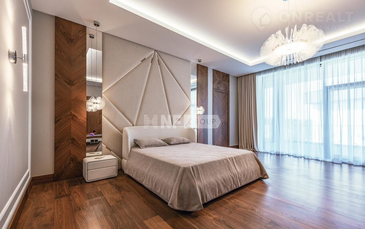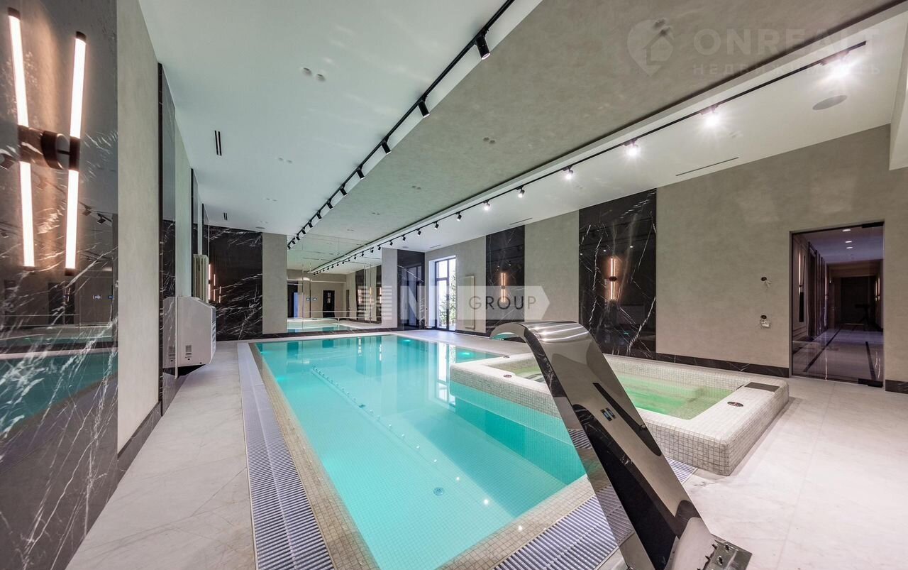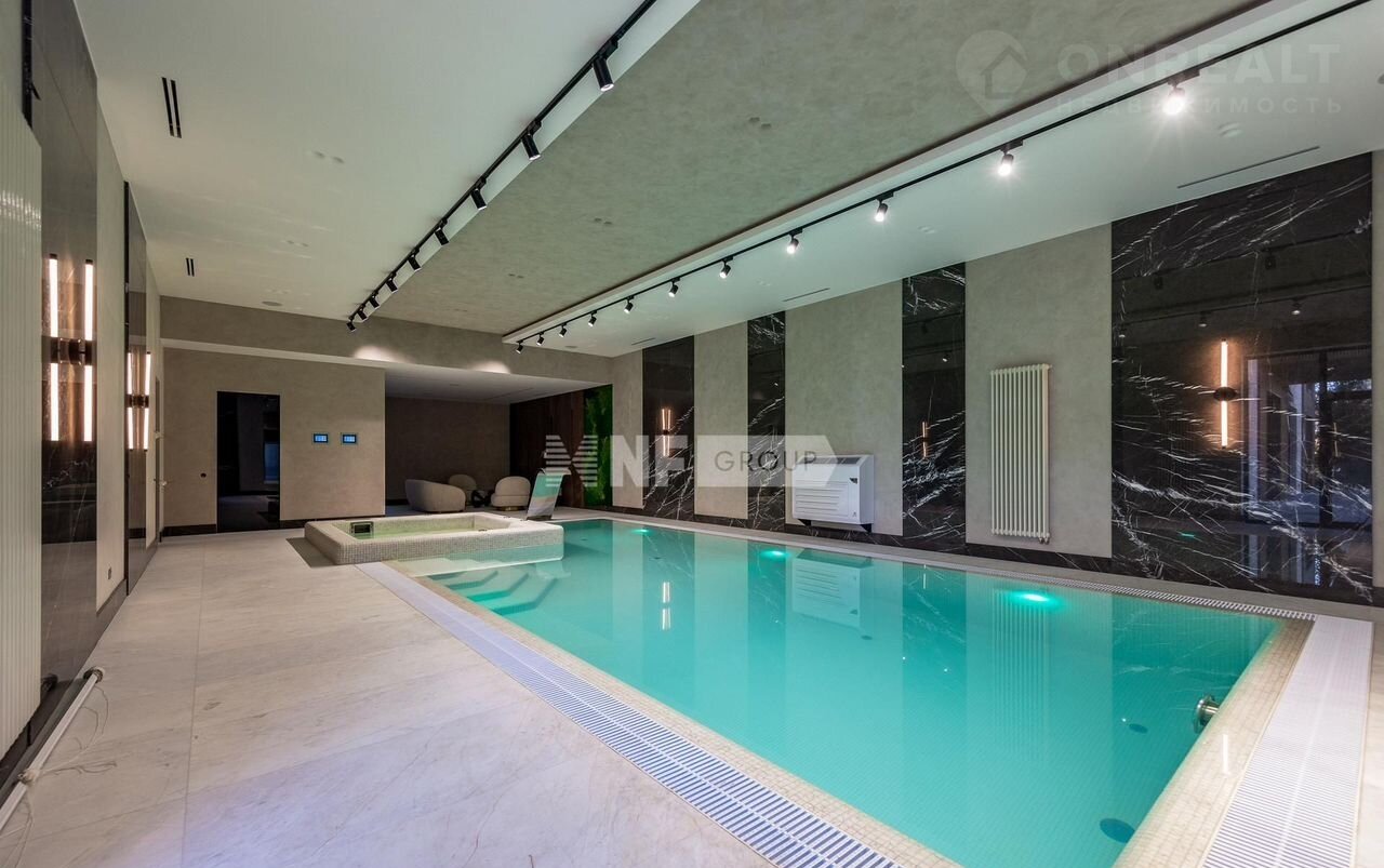 На первом этаже вас встречает светлая прихожая с гардеробной, просторная гостиная, объединённая с кухней и столовой. Здесь же расположены уютный кабинет, приватная спальня с собственным санузлом и гардеробной, а также полноценная зона отдыха с бассейном, сауной и хаммамом, постирочной и удобным санузлом. Второй этаж — это приватная зона, включающая три спальни, каждая со своим санузлом и гардеробной.