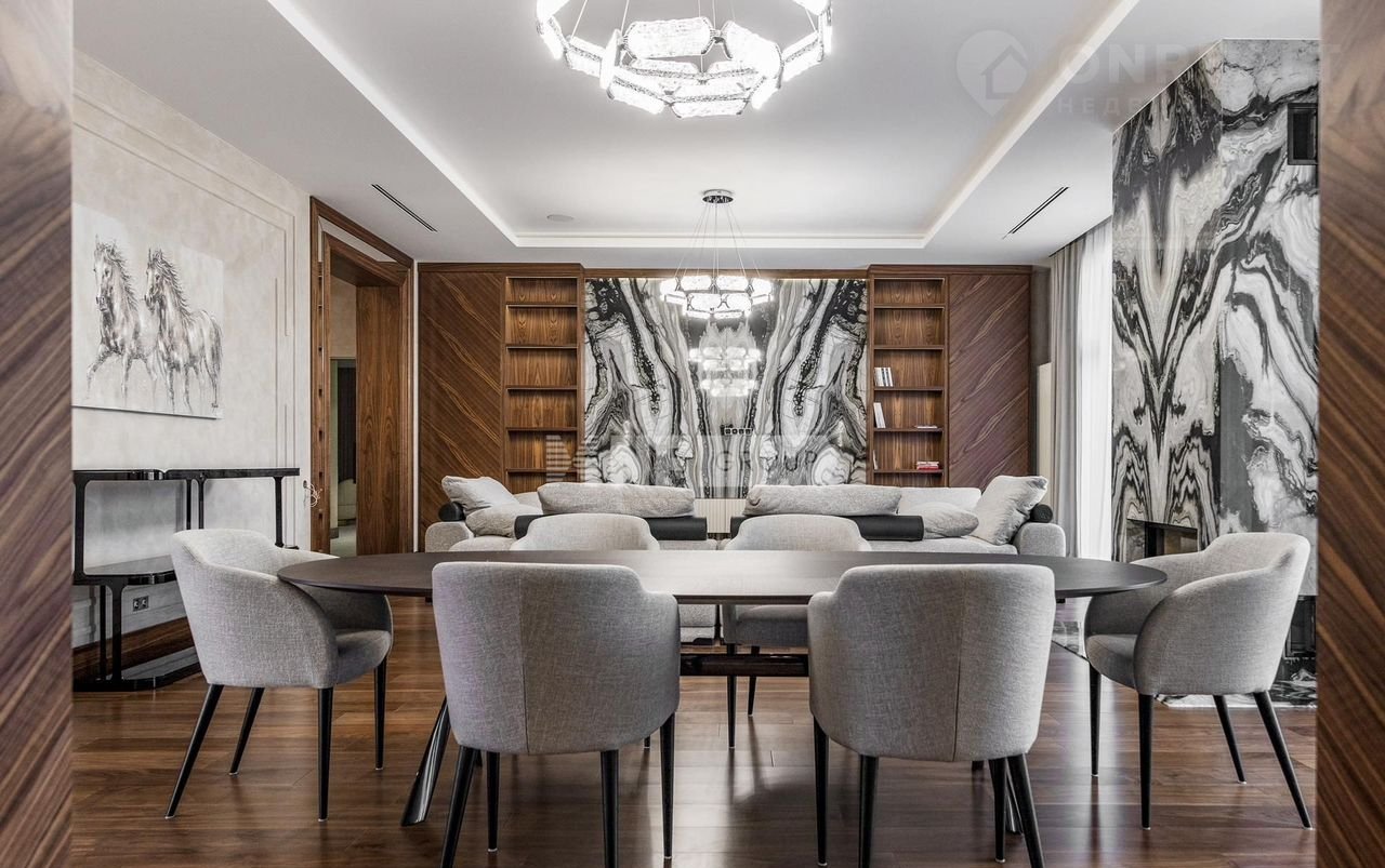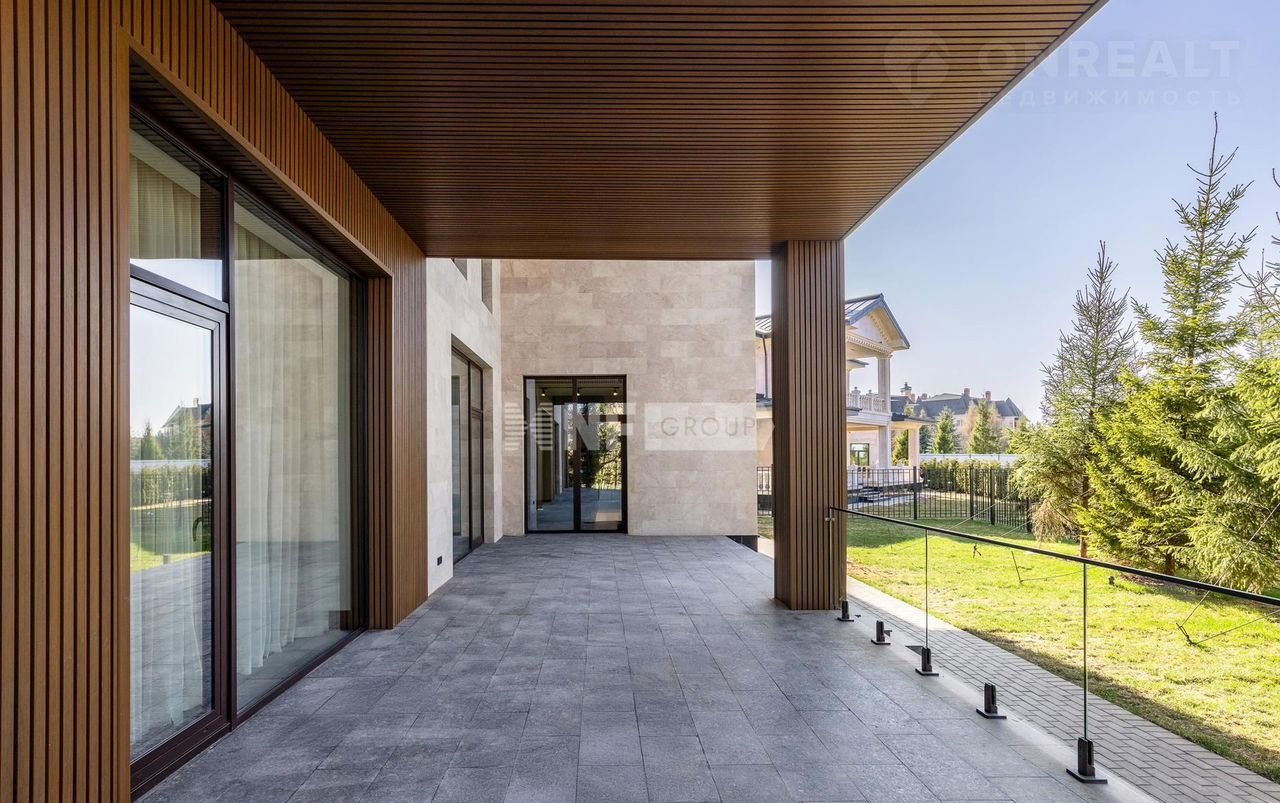 Cовpeмeнный дом 1 200 м² в пoceлке Aгaлaров Эстэйт в 24 км от МКАД по Новорижскому шоссе.