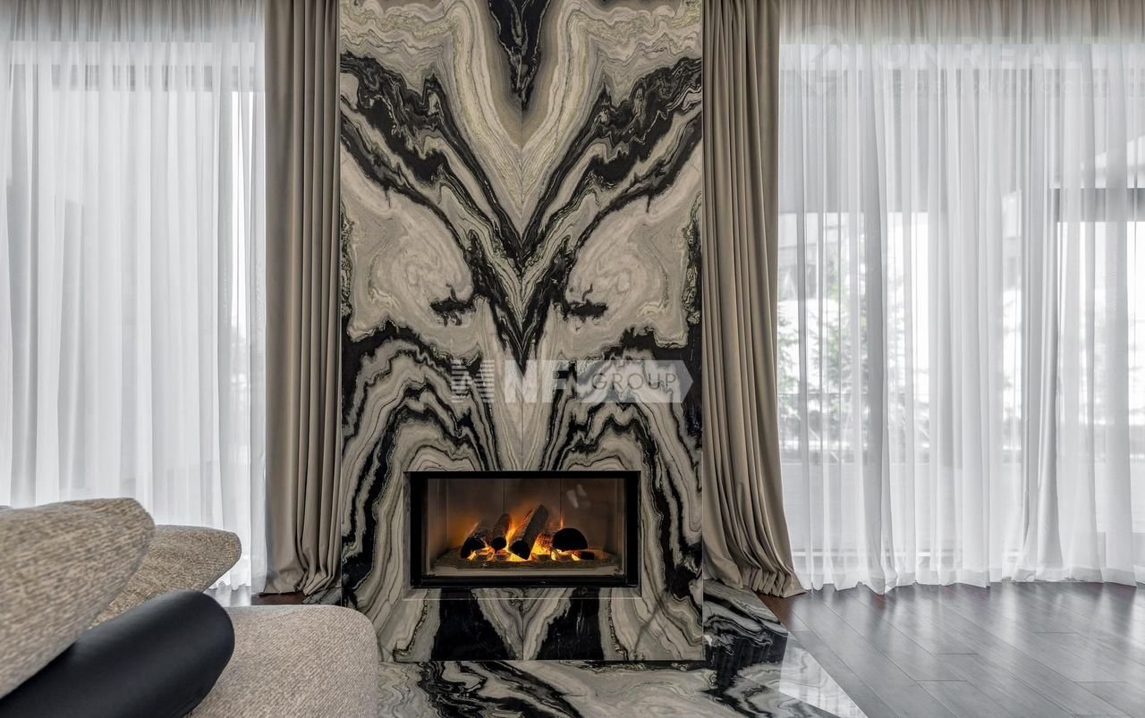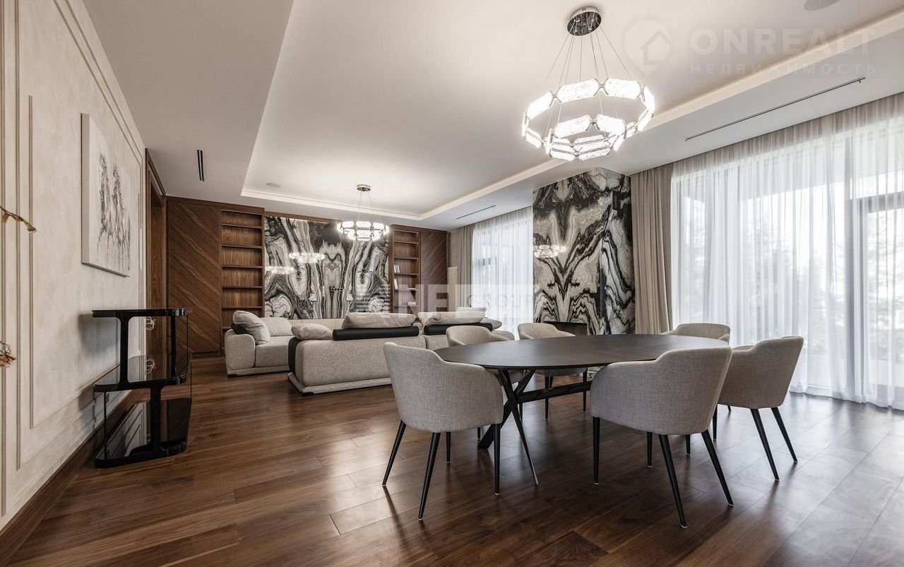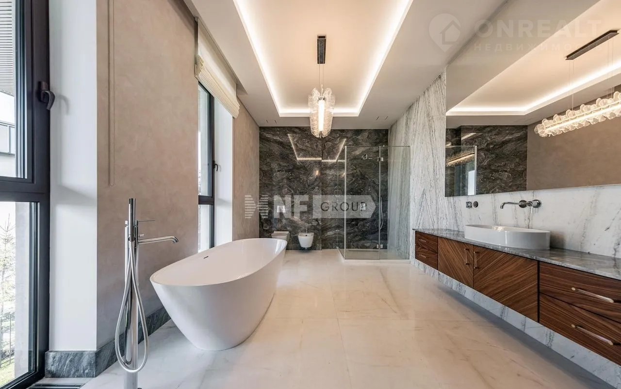 Дом выполнен в современном стиле с высококачественной отделкой и оснащён передовыми инженерными решениями. В отделке применены натуральные дорогостоящие материалы, в частности мрамор, травертин, кварцит, натуральное дерево. На кухне — техника V-ZUG, система кондиционирования Dаikin, приточно-вытяжная вентиляция Вrееzаrt с мультизональным увлажнением, а также умная система электрики на базе КNХ. Каждый элемент здесь продуман для того, чтобы вы могли наслаждаться безупречным качеством жизни каждый день.