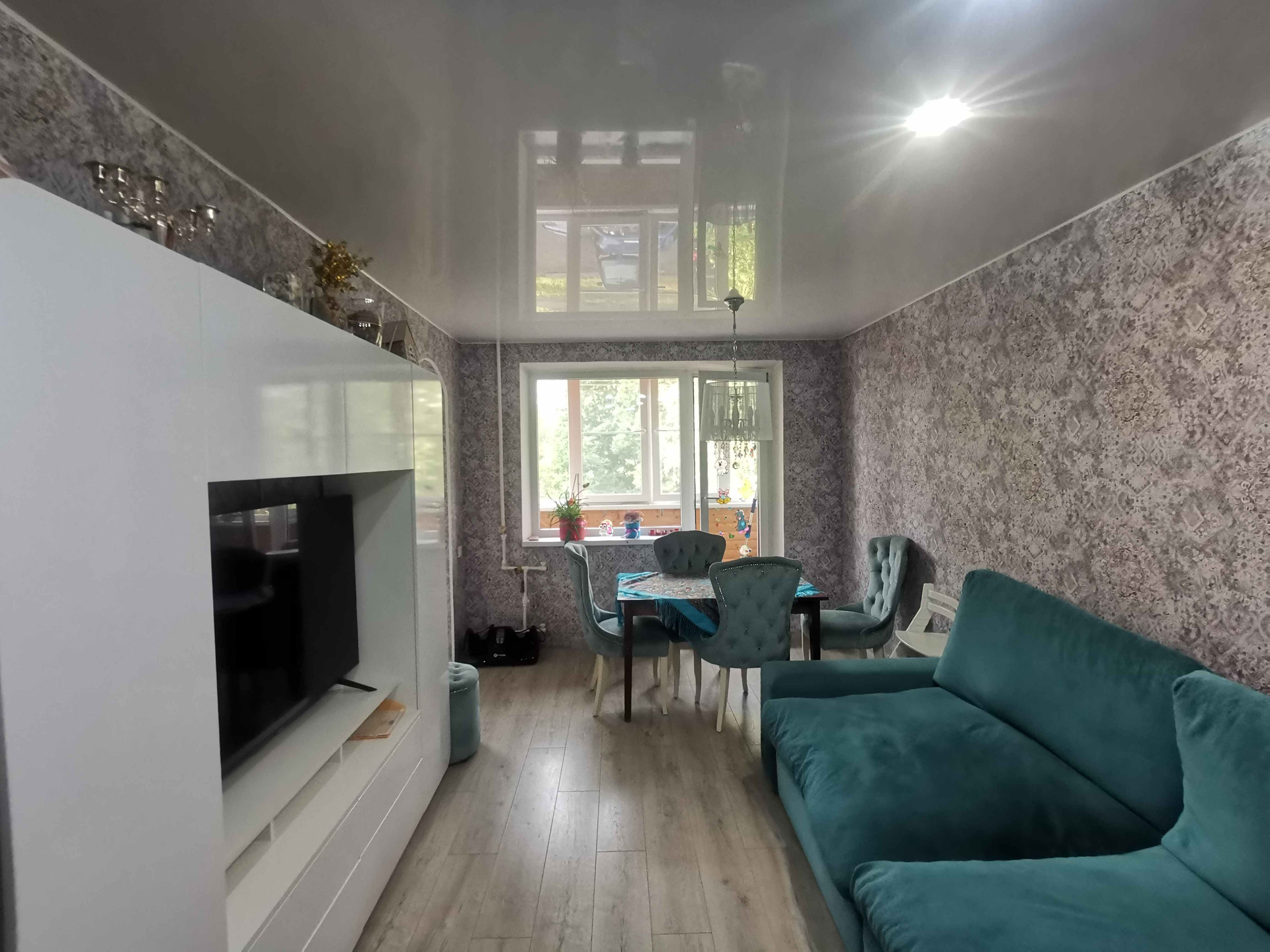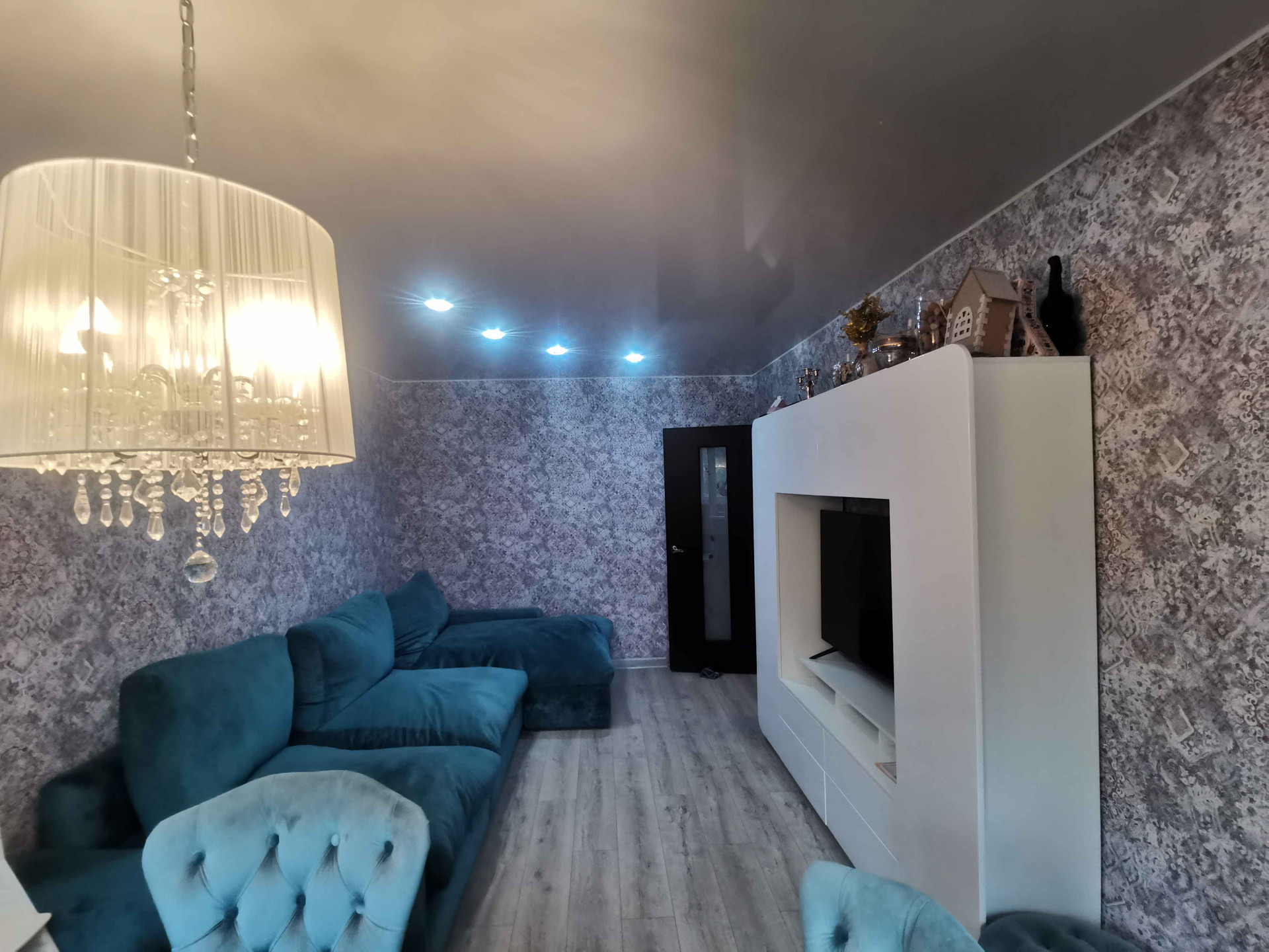 Натяжные потолки во всей квартире.