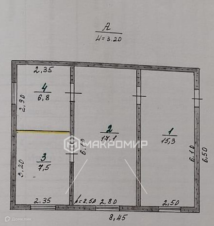 Высота потолков 2.5 м