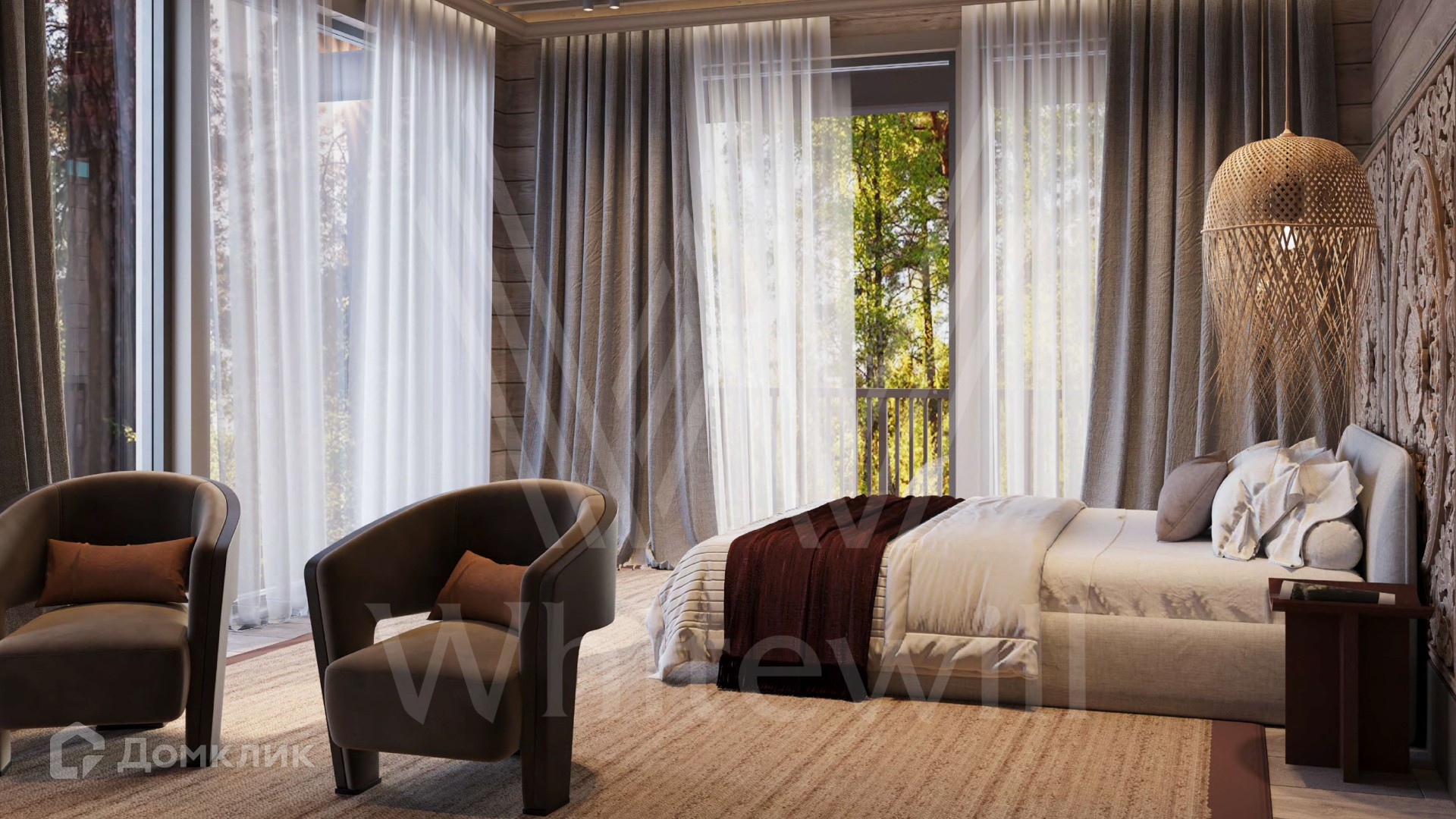 2-й уровень: холл, спальня с гардеробной, санузлом и 2-мя балконами, 2 спальни