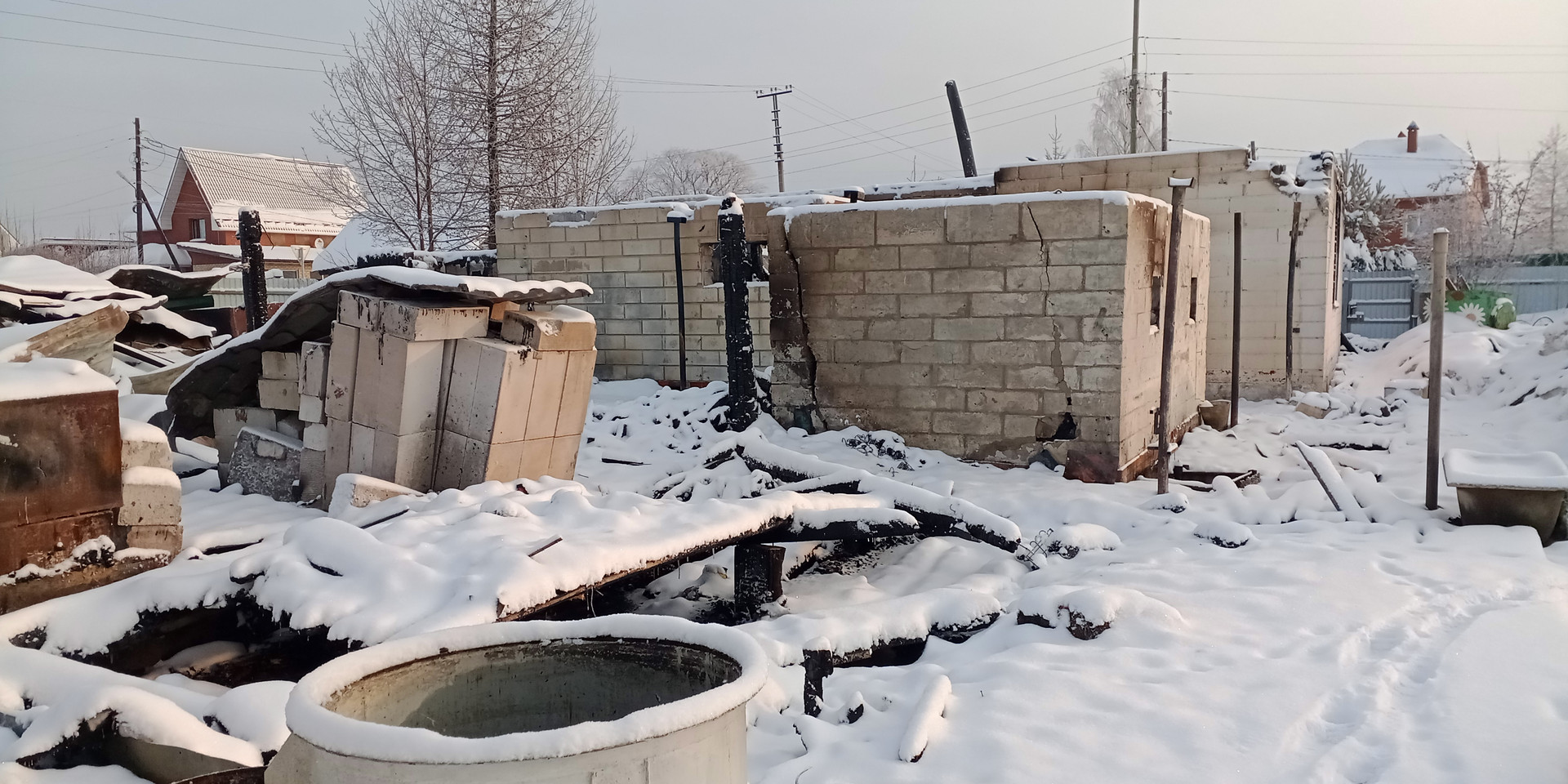 остались погоревшие постройки около 50 кв.м,