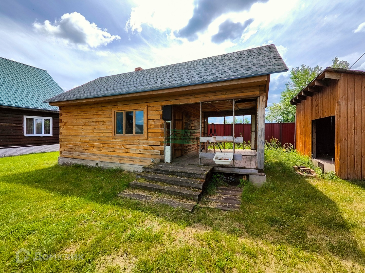 На участке находятся гараж с отдельными воротами и котельной в подвале, баня без внутренней отделки, а по соседству находится дровяник.