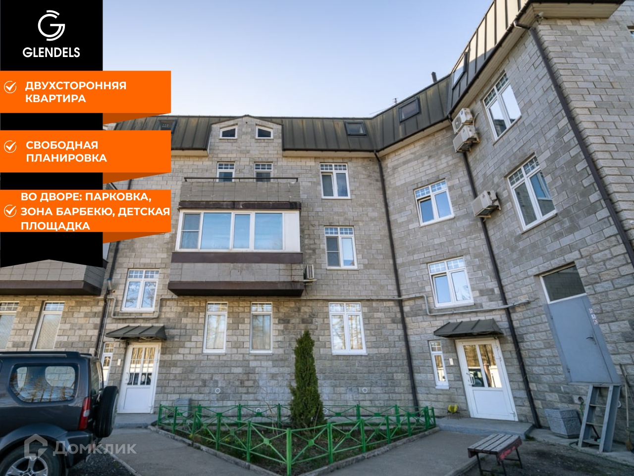 Детская площадка, зона барбекю и своё парковочное место во дворе.