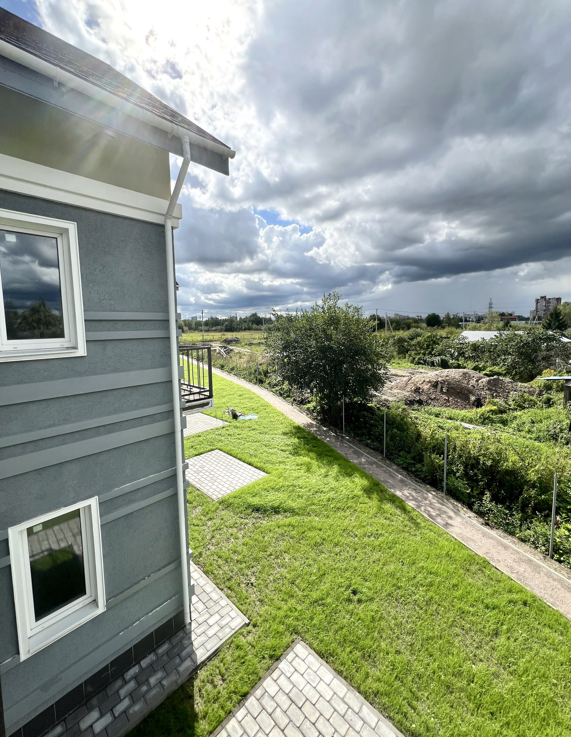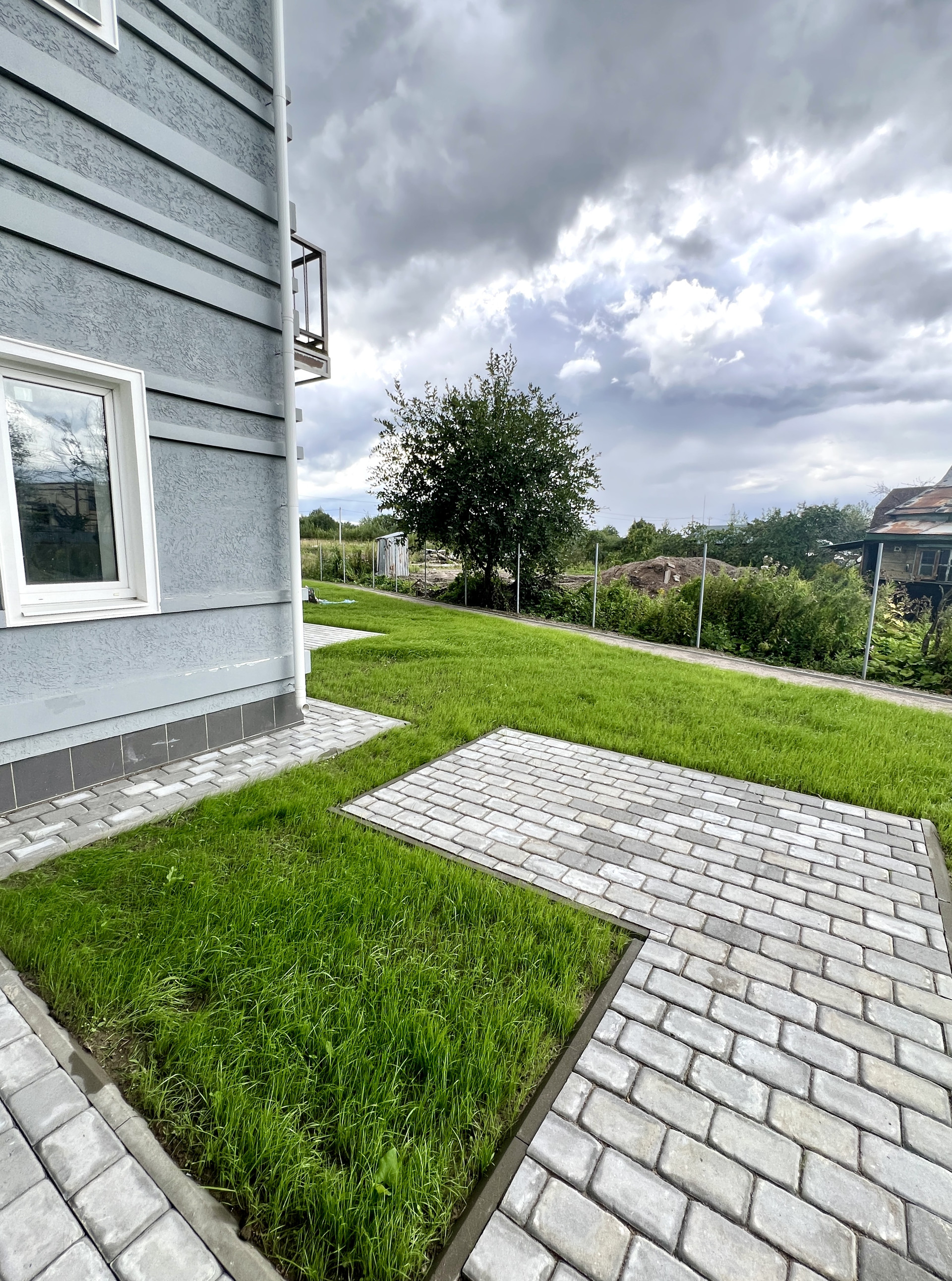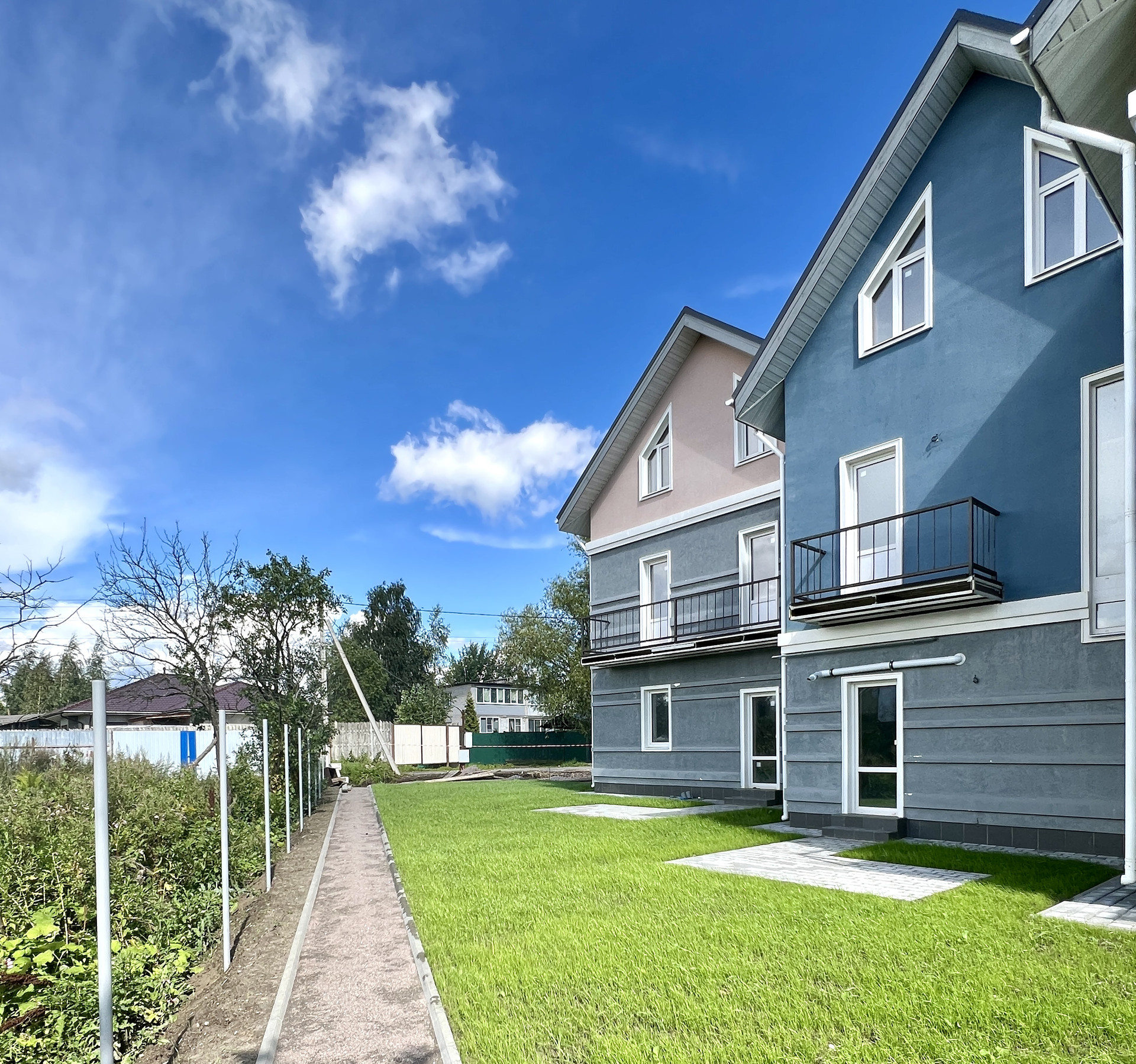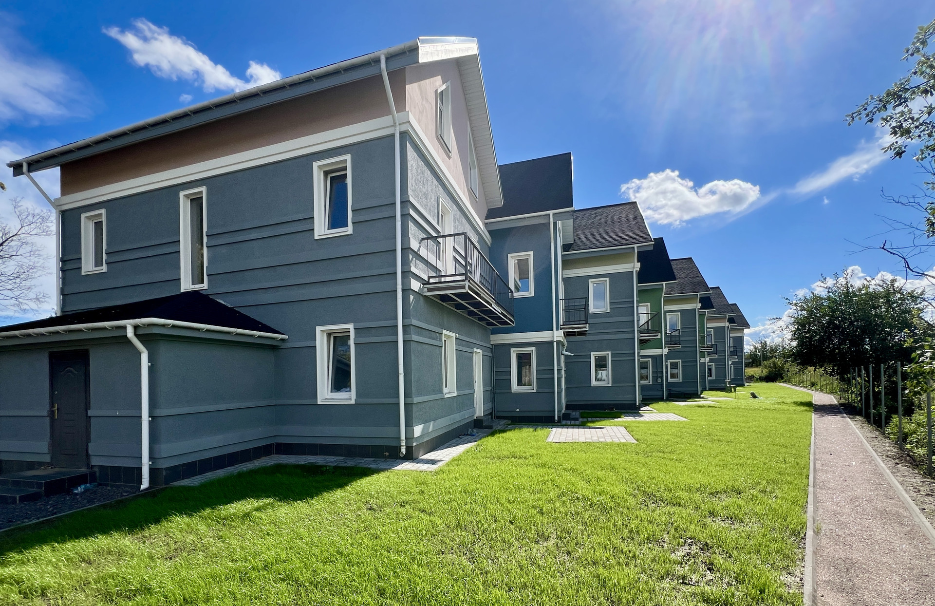 - задний двор: благоустроенная территория - газон и зона отдыха, мангальная зона перед каждым домом, уличное освещение и озеленение;