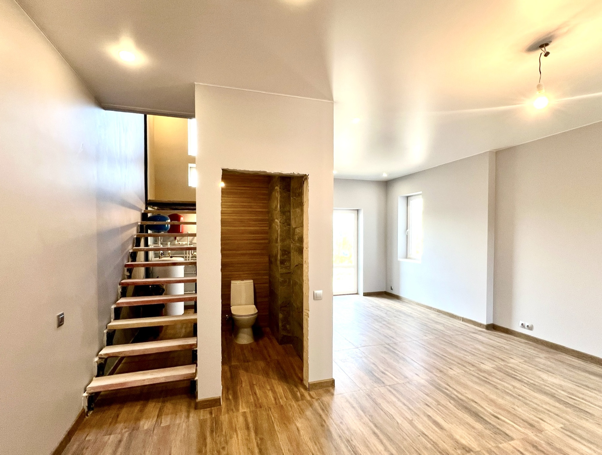 В доме много света, очень просторно и уютно! Установлены двухкамерные стеклопакеты, оборудованы натяжные потолки, стены оклеены обоями под покраску, полы в жилых помещениях выложены ламинатом, в санузлах - кафельная плитка; полы оснащены системой подогрева (санузлы и первый этаж), установлена полноразмерная ванна и бойлер на 150 литров. Дом очень тёплый и подходит для круглогодичного проживания!