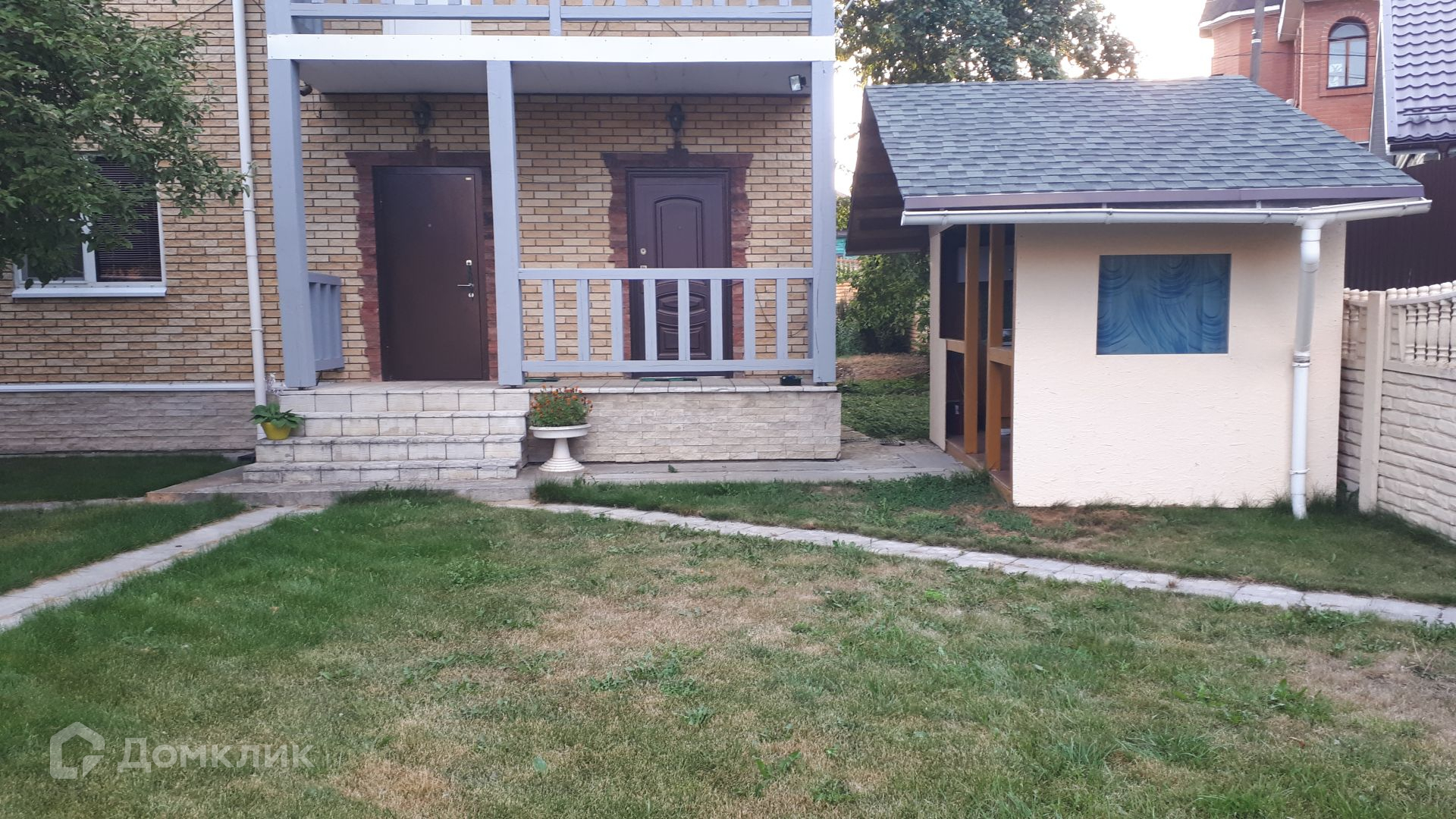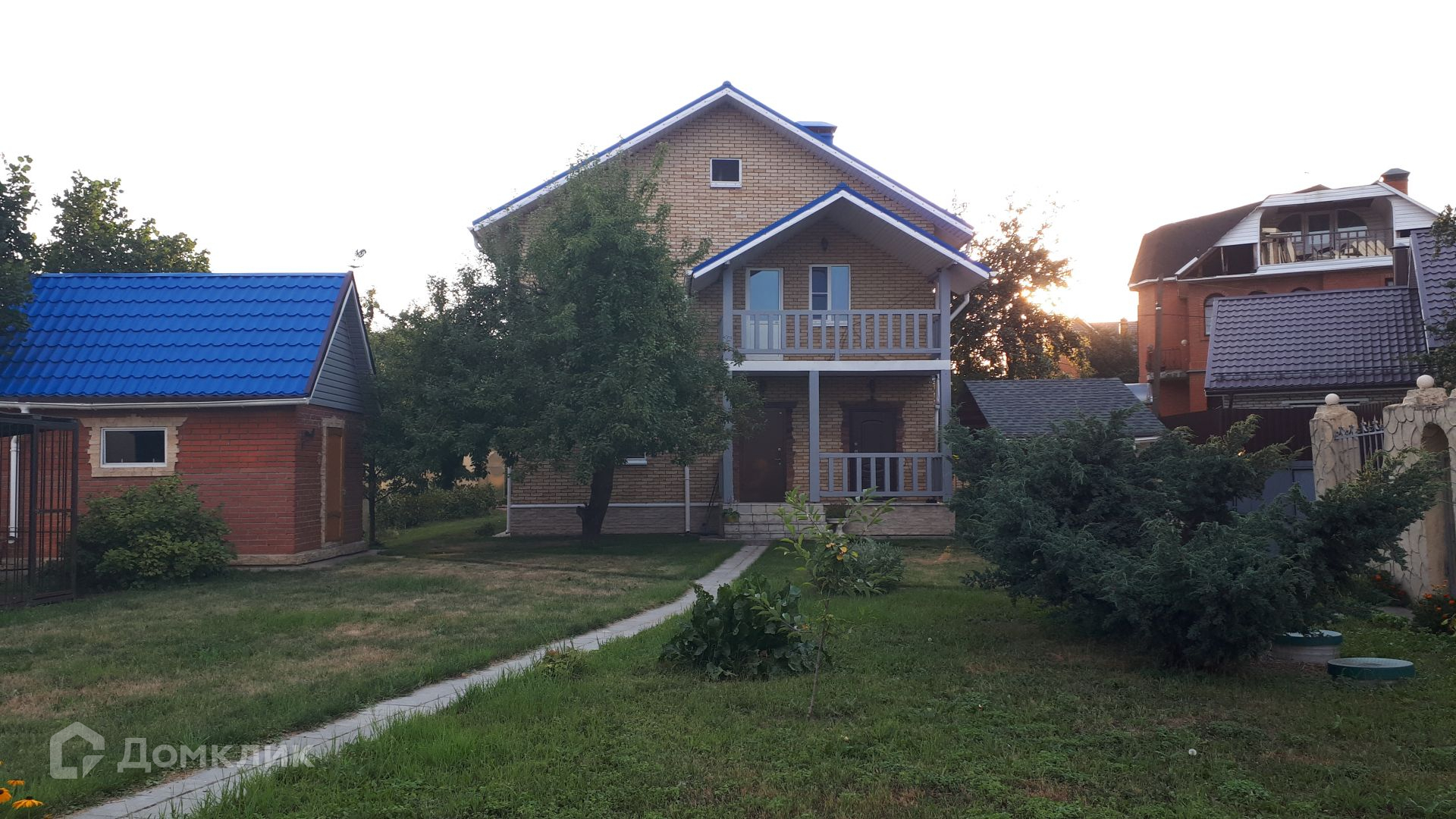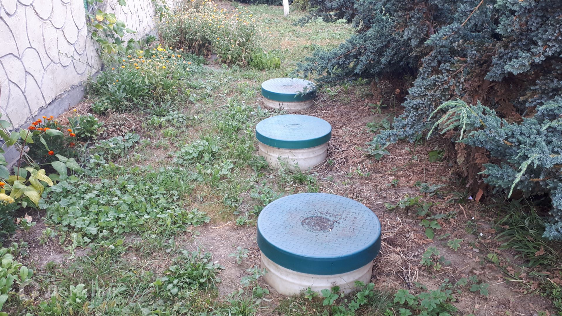 Участок ровный, со всех сторон огорожен. Соседи со всех сторон отстроились. На участке: гараж на два автомобиля, баня с сауной, теплица, хозяйственный блок, беседка с летней кухней.