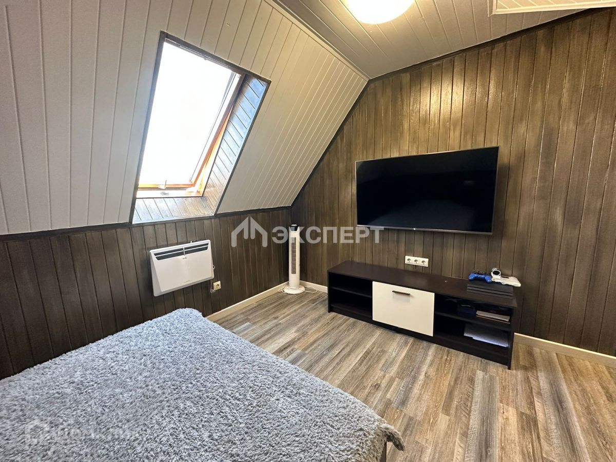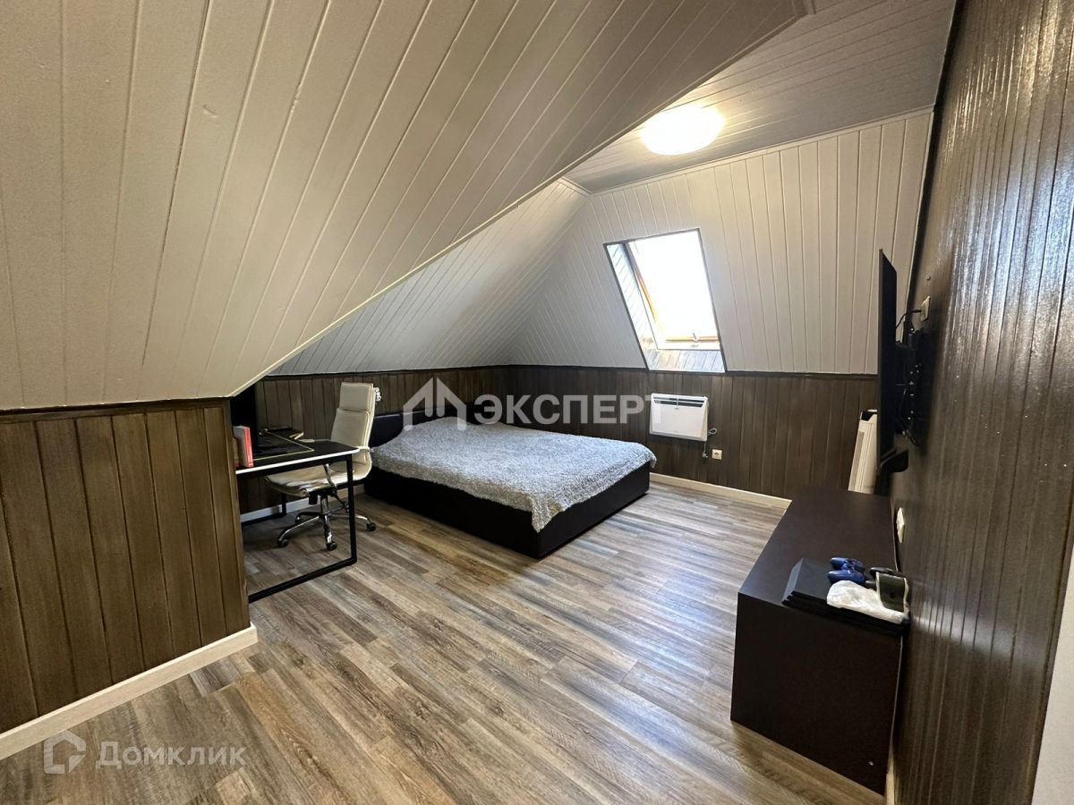 В основном доме на первом этаже большая кухня-гостиная, санузел, спальня с дополнительной комнатой, оборудованной под кабинет.