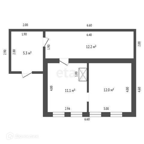 Общая площадь 40.6 м2