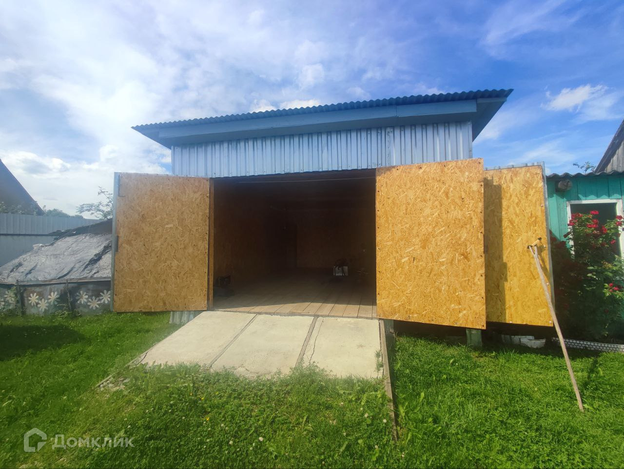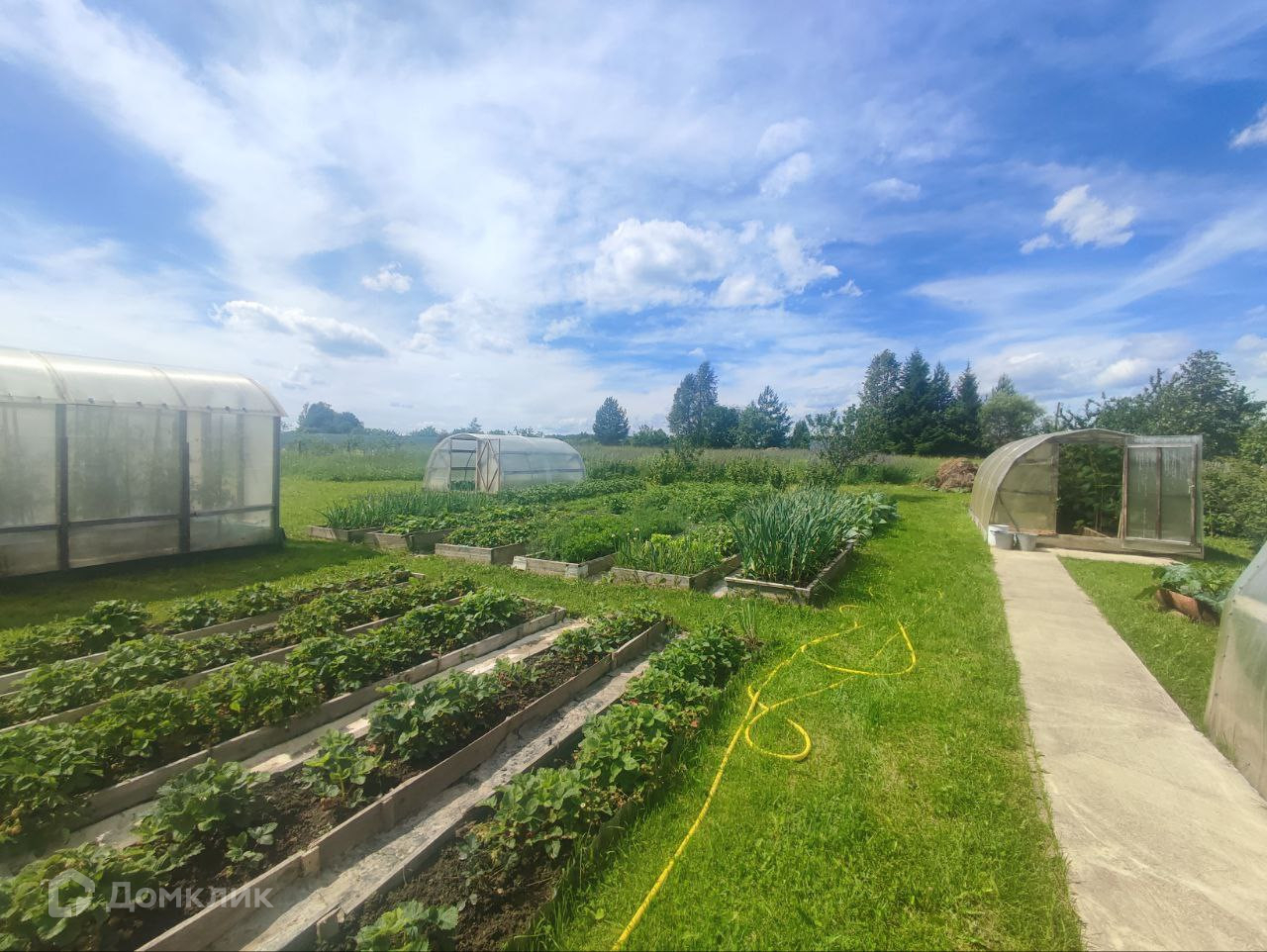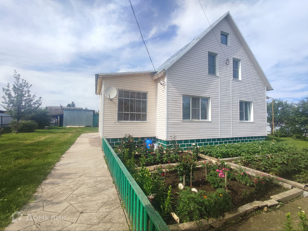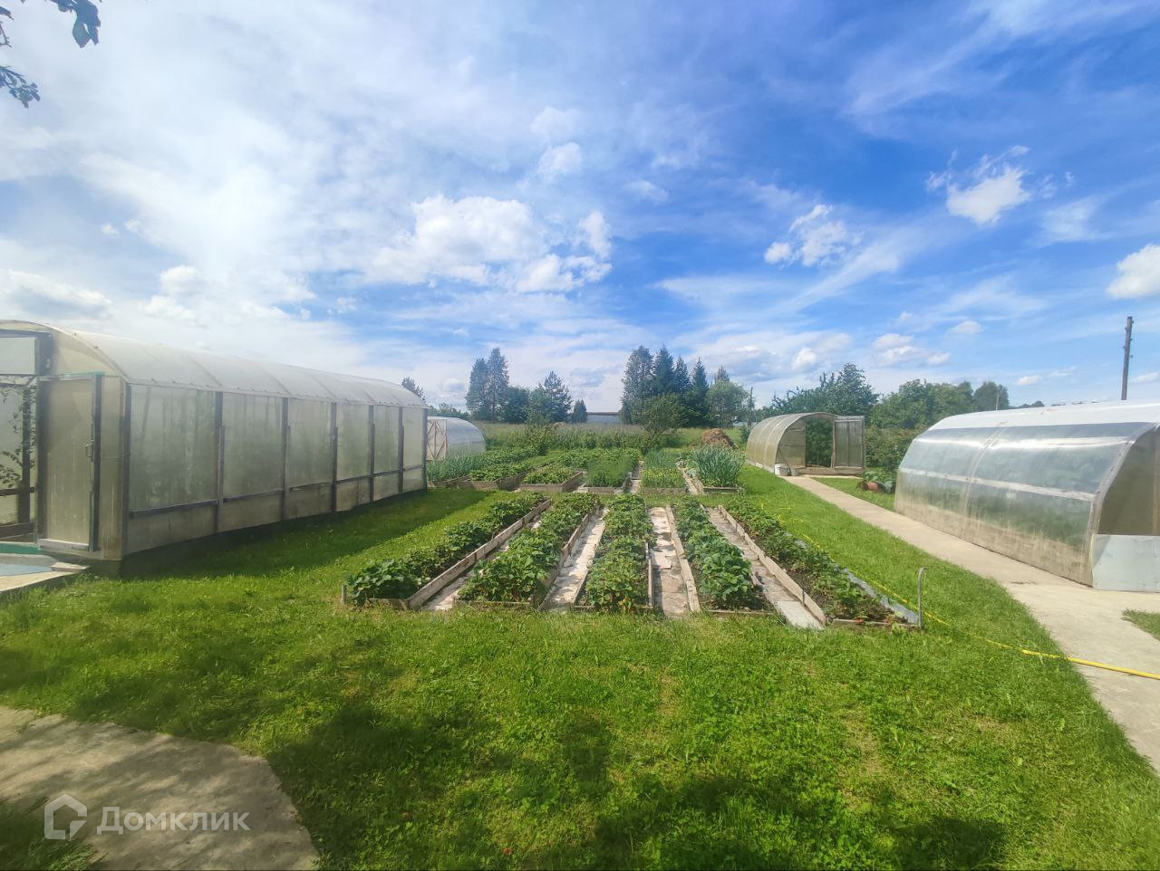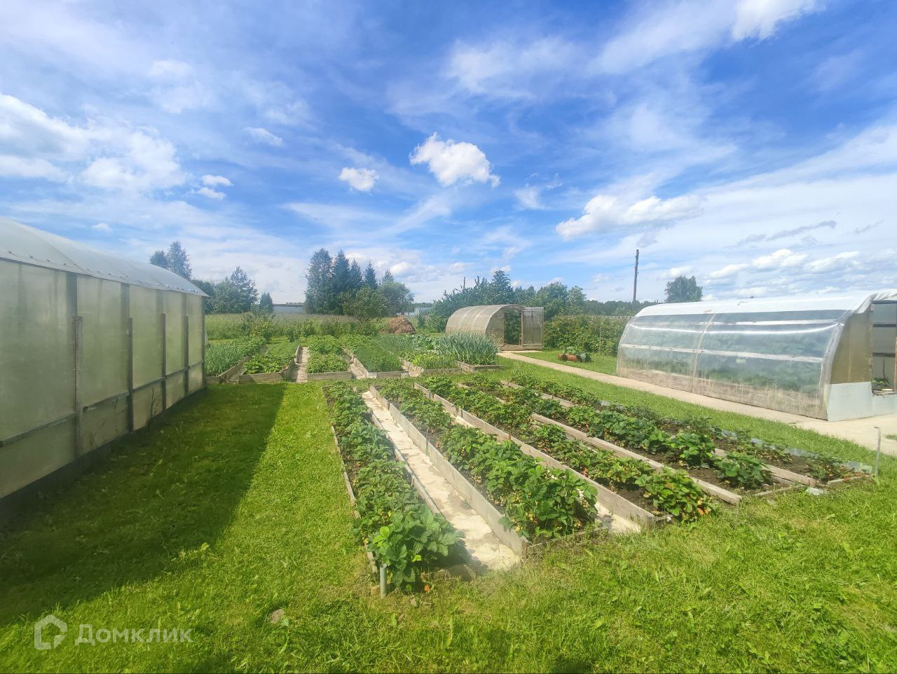 На участке имеется баня, погреб, гараж, сараи, несколько теплиц, плодовые деревья и кустарники.