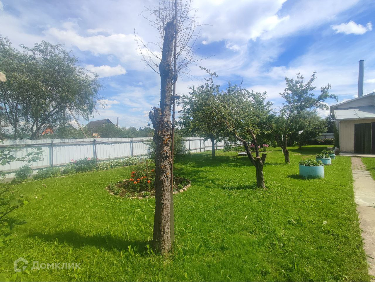 Участок ровный, огорожен с четырех сторон, заезд на участок с 2 сторон ( при необходимости есть возможность размежевать и продать часть участка) ухожен.