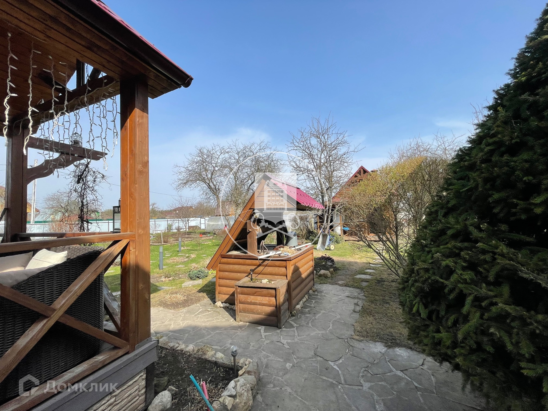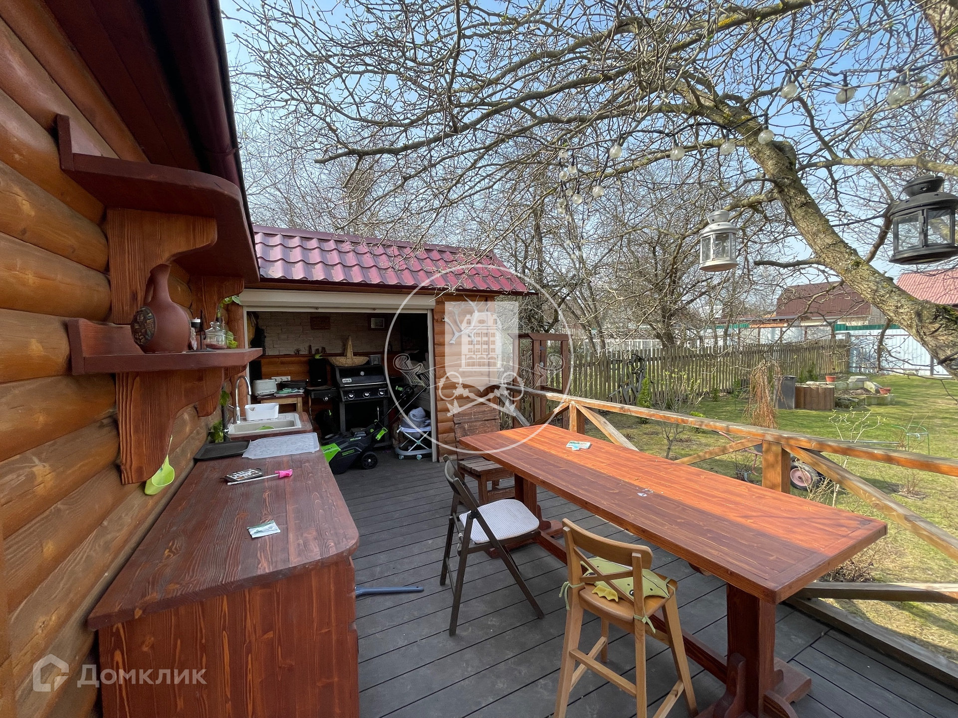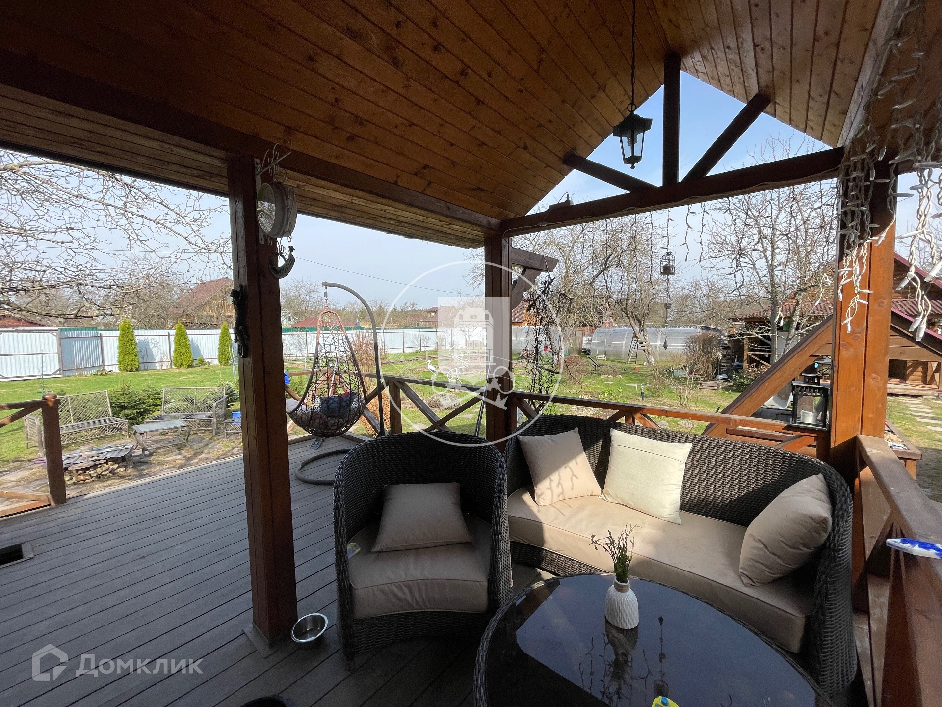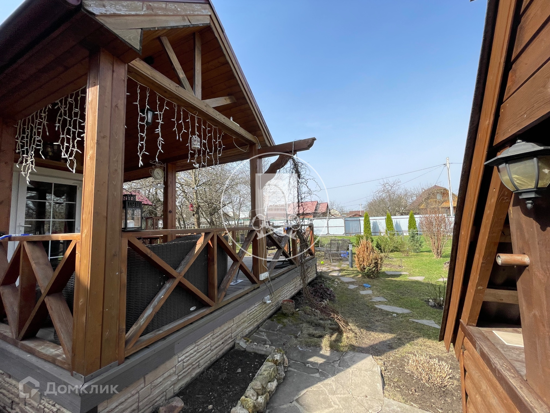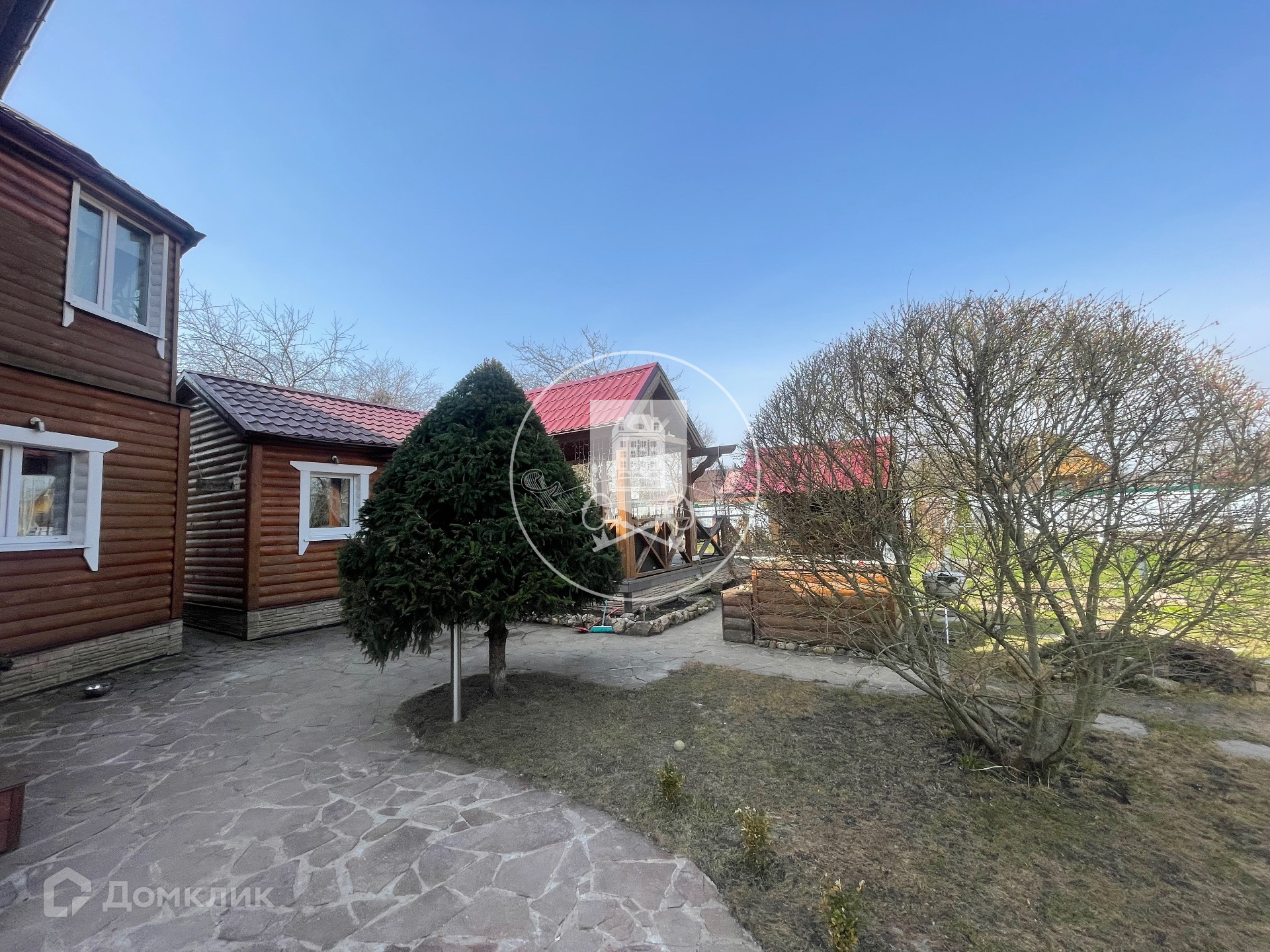 На участке расположена баня, основной дом (первый этаж бетонные блоки, утеплены, обшиты блокхаусом. Второй этаж - каркасный,с утеплителем, обшит также блокхаусом),гостевой дом, зона летней кухни с барбекю. Все дома используют круглогодично, отапливают зимой. Электричество, газ заведены в дом.