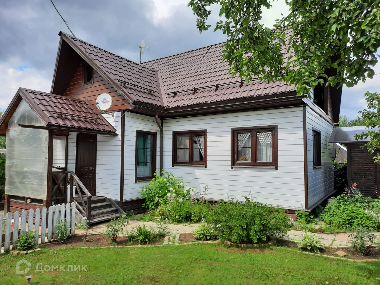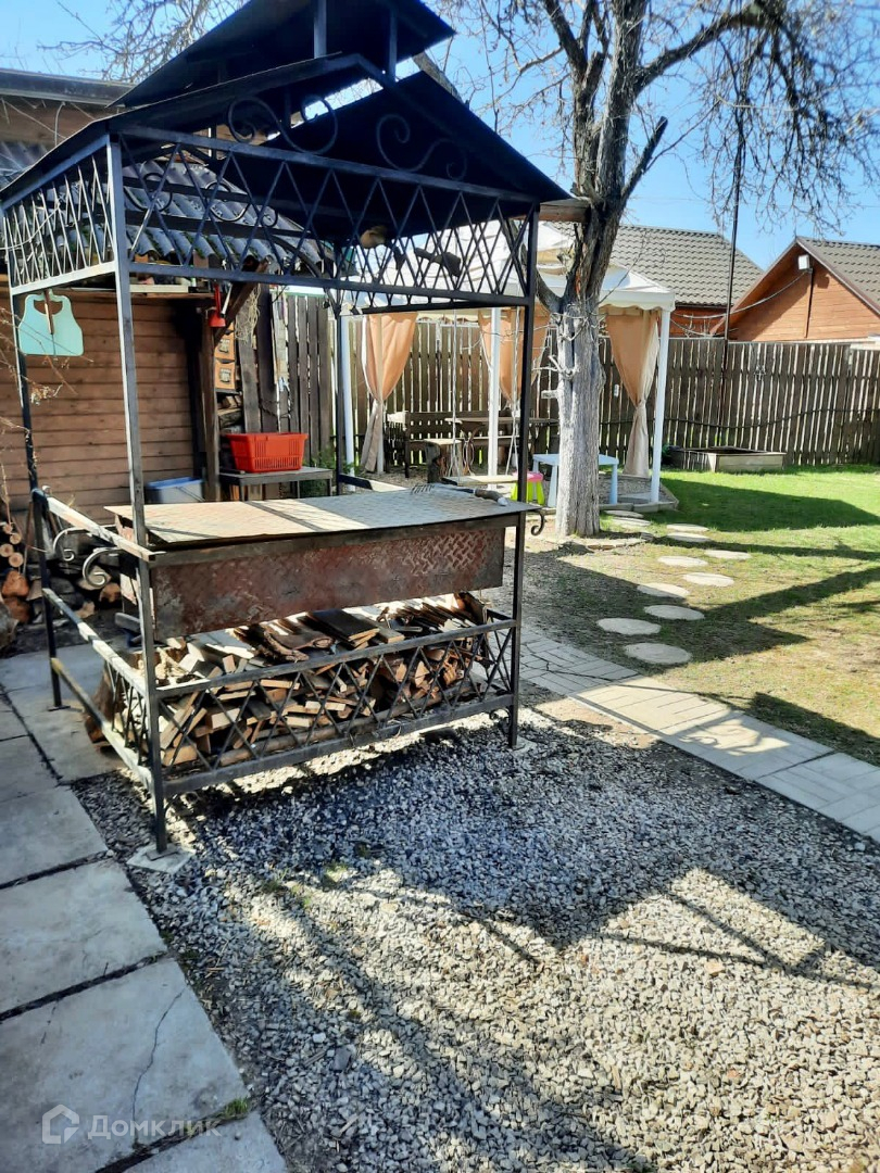 На участке: крытое парковочное место со смотровой ямой, зона барбекю, хозпостройка 2х6 м., отапливаемая теплица 3х4 м. цветы, плодово-ягодные деревья, грядки.
