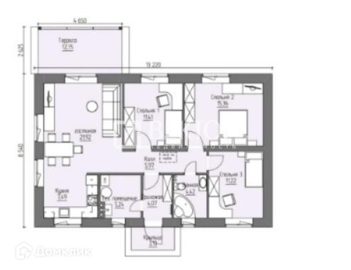 - 3 комнаты,