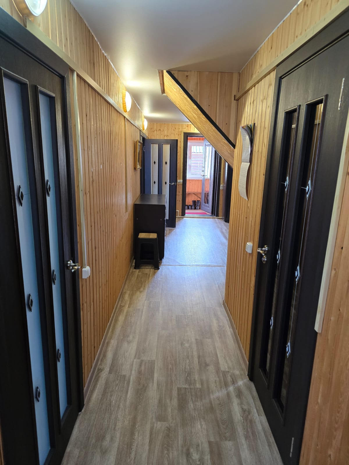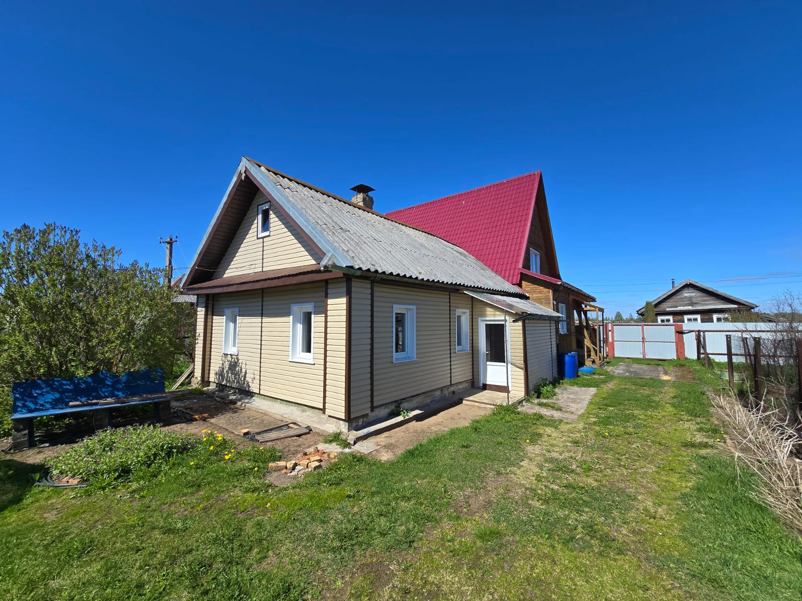 Продам дом. в 2016 году к старому дому был фактически пристроен новый дом из бруса, площадью 124,4 кв.м., земельный участок 9 соток (в собственности). Старый дом обшит сайдингом, установлены стеклопакеты, натяжные потолки. В нём расположена комната и кухня. С/у раздельный (отделка: панели на стенах, линолеум на полу), сантехника новая, трубы, счетчик на газ. Камин. Отделка стен: 1 этаж-стены обшиты гипсокартоном, 2 этаж-отделка вагонкой. Натяжные потолки, новая электропроводка. Стеклопакеты, современные межкомнатные двери. Напольное покрытие: линолеум в прихожей, в комнатах и на кухне-ламинат, в зоне камина плитка. Двухконтурный газовый котел, новые радиаторы. В доме чисто и уютно, можно заезжать и жить, вся обстановка остаётся. Из окон второго этажа открывается прекрасный вид на реку Мсту. Ровный, сухой, разработанный участок на котором расположен навес под автомобиль, баня и мастерская. Рассмотрим вариант обмена.