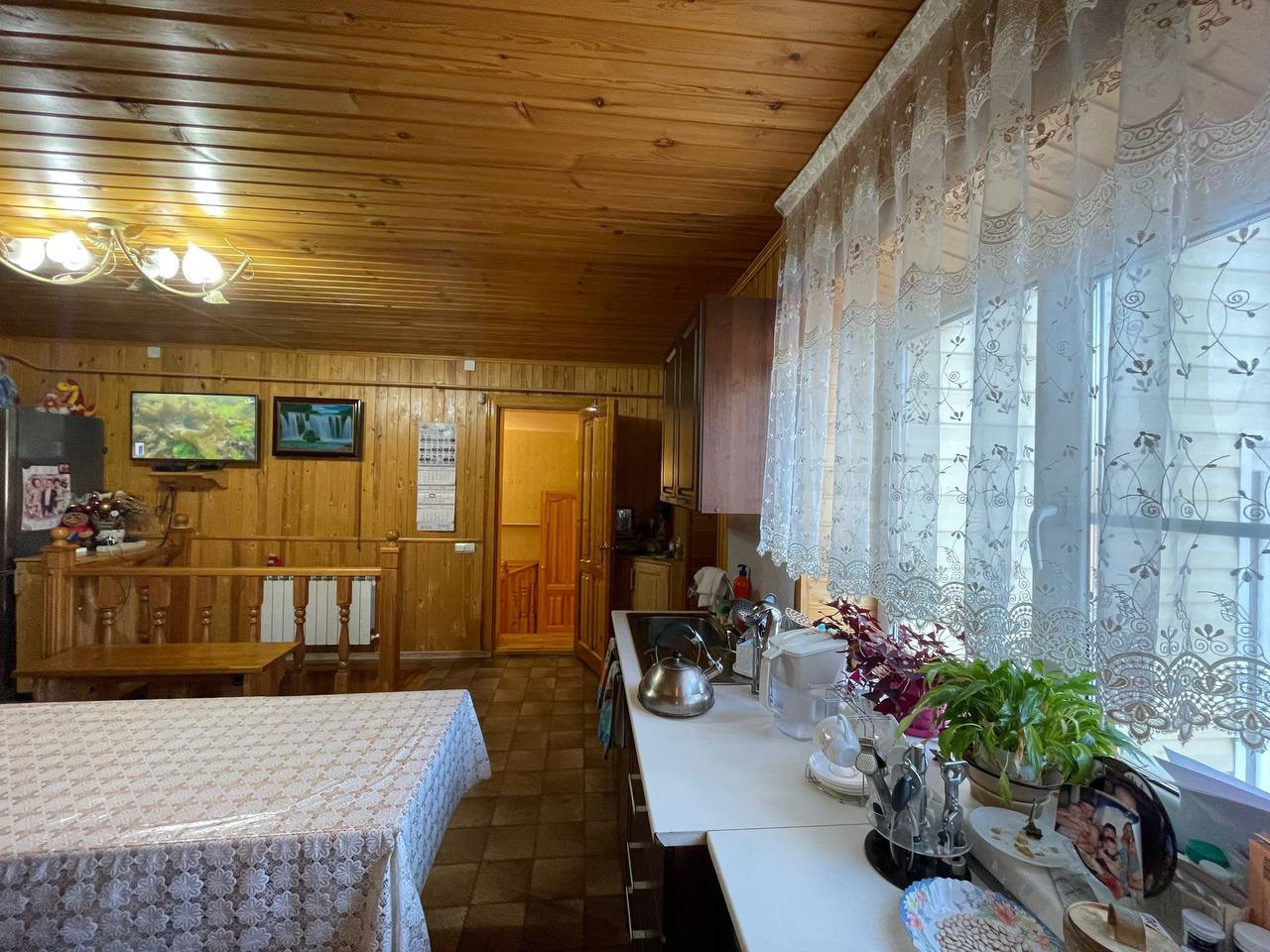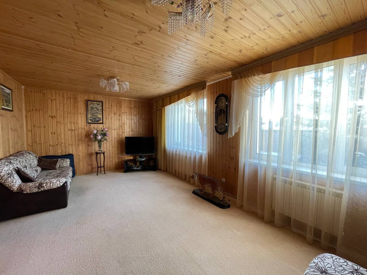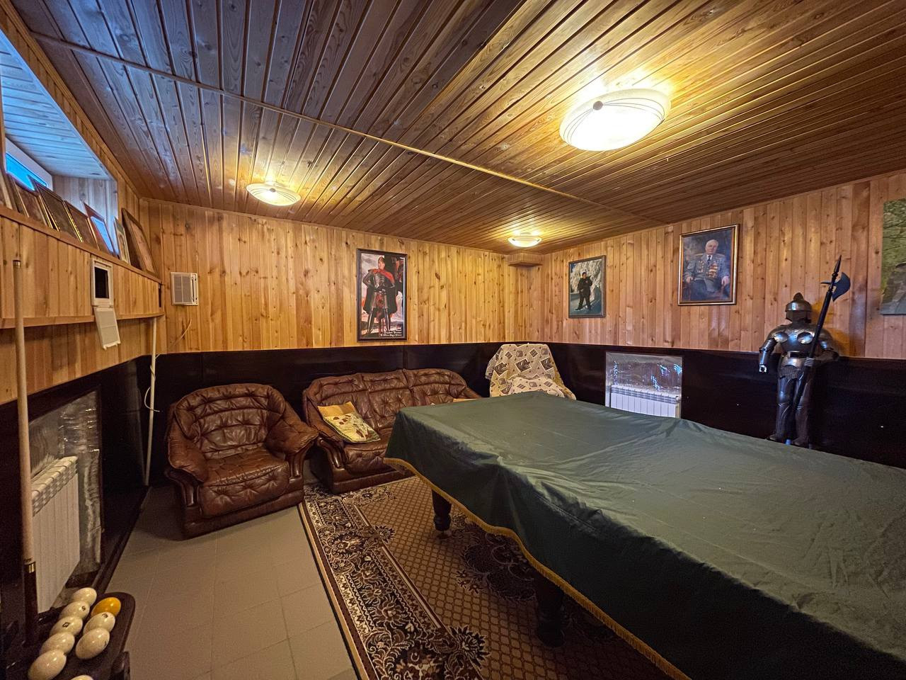 В доме имеется цокольный этаж - комната отдыха с бильярдным столом. Остается вся мебель и техника, кроме бильярдного стола, морозильной камеры и стиральной машины.