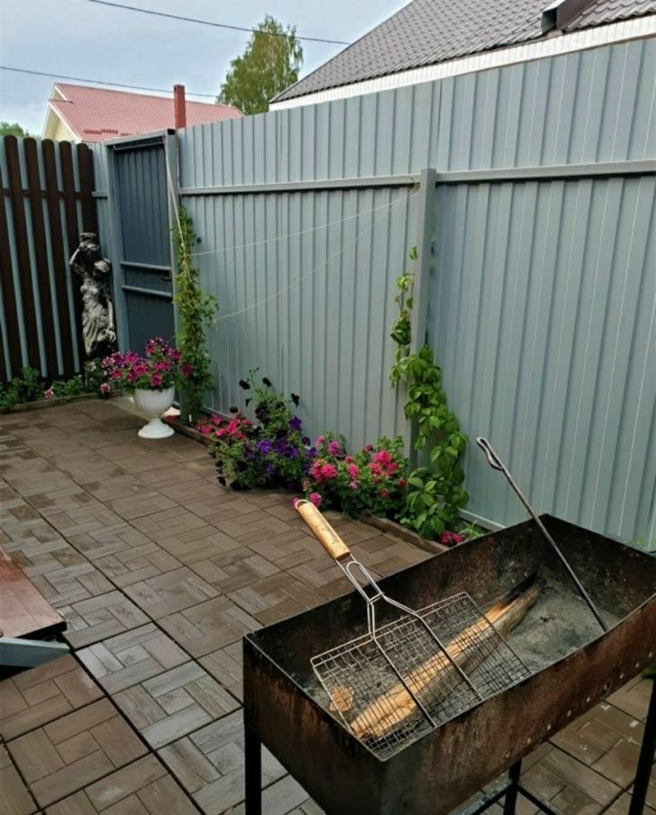 Благоустроенная территория, мангальная зона, зелень, зона отдыха. Летом не жарко, т.к. теневая сторона. Локация у леса.