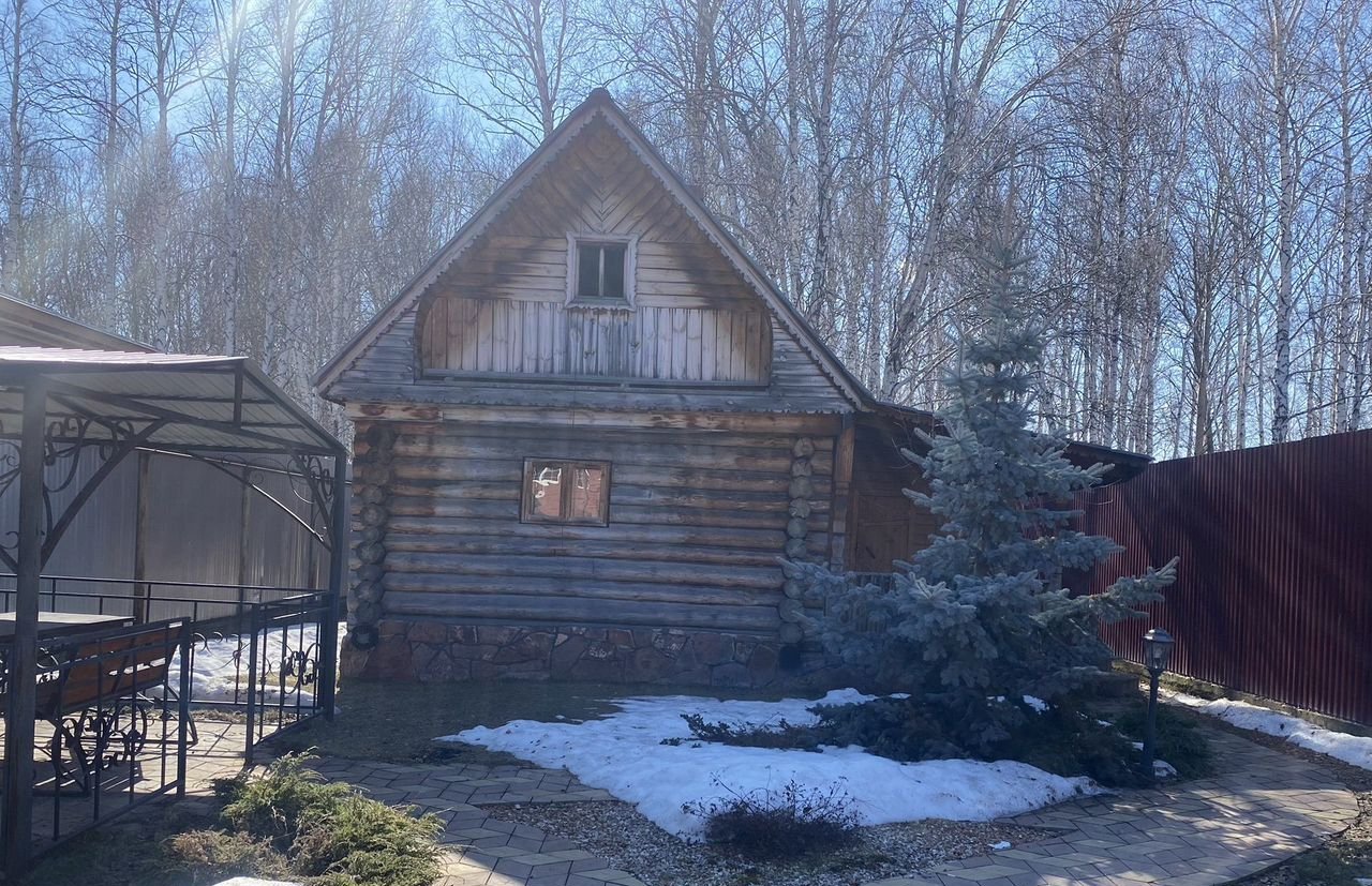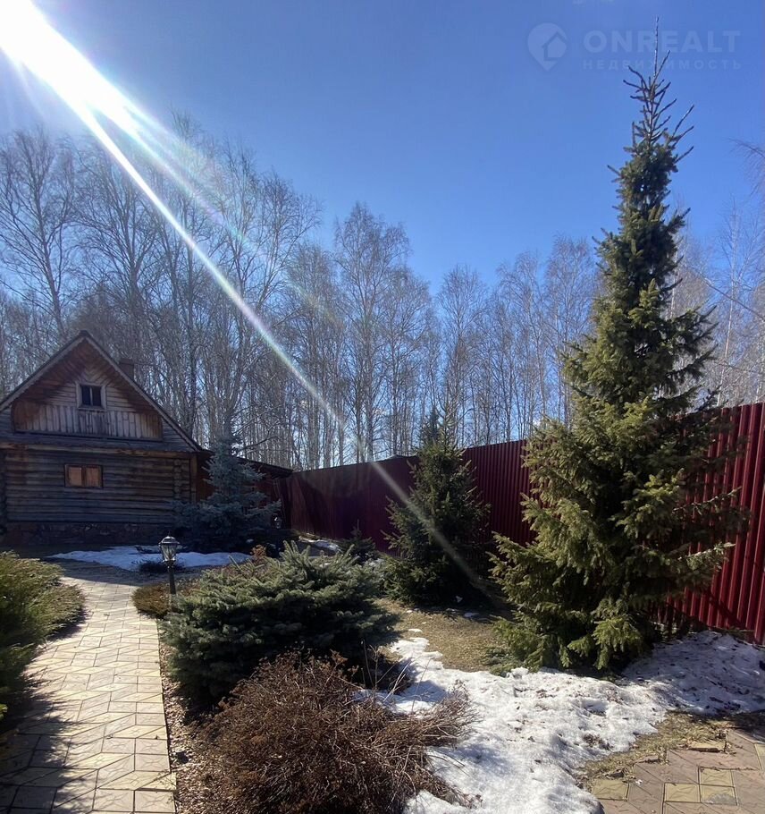 Огорожен забором с выходом в березовую рощу (часть участка, тоже в собственности). Посажены ели, можжевельник, туи, декоративные кустарники. Дорожки выложены плиткой. На участке две мангальные зоны, баня, детская площадка.