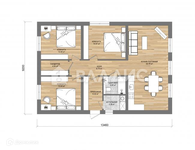 Дом 101 м2- 3 комнаты, котельная, санузел раздельный, холл, кухня гостиная.