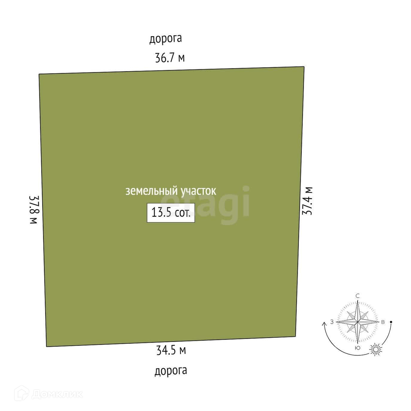 Площадь участка 13.5 сот.