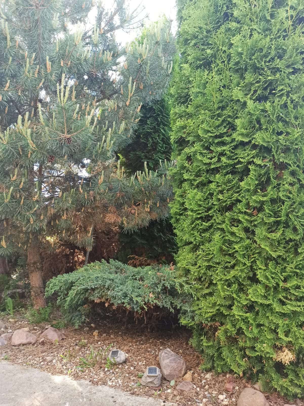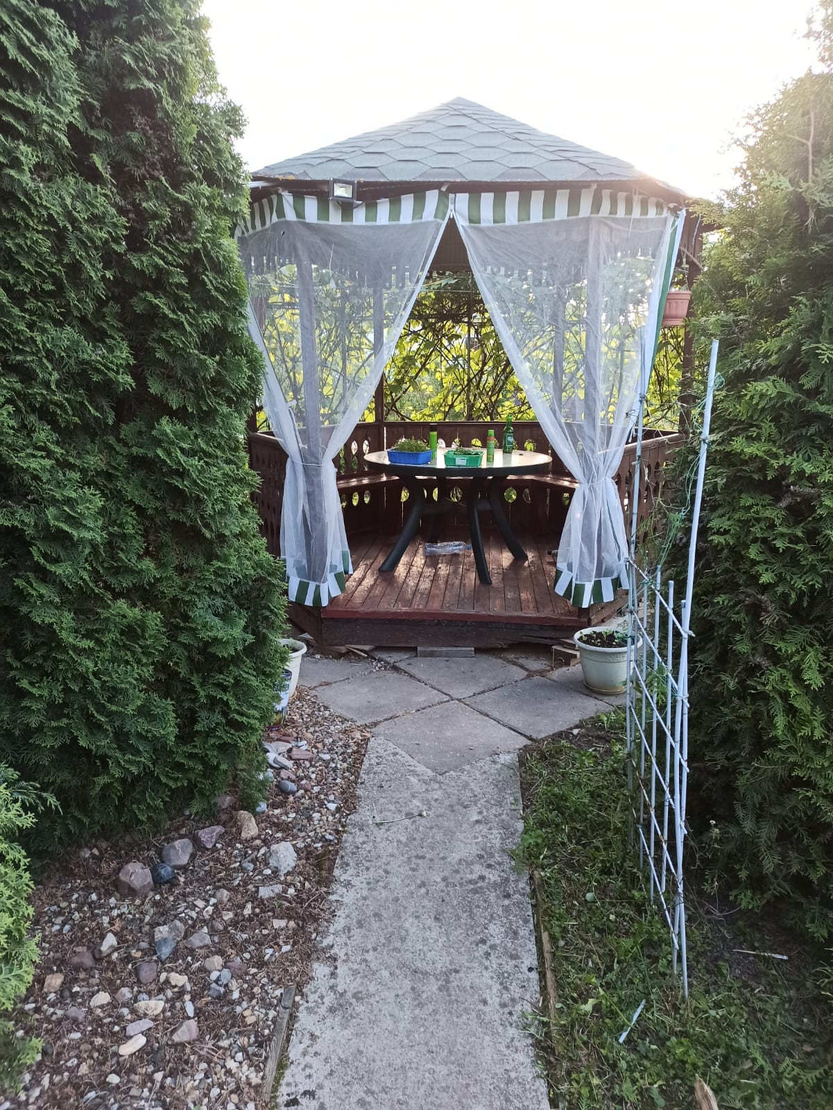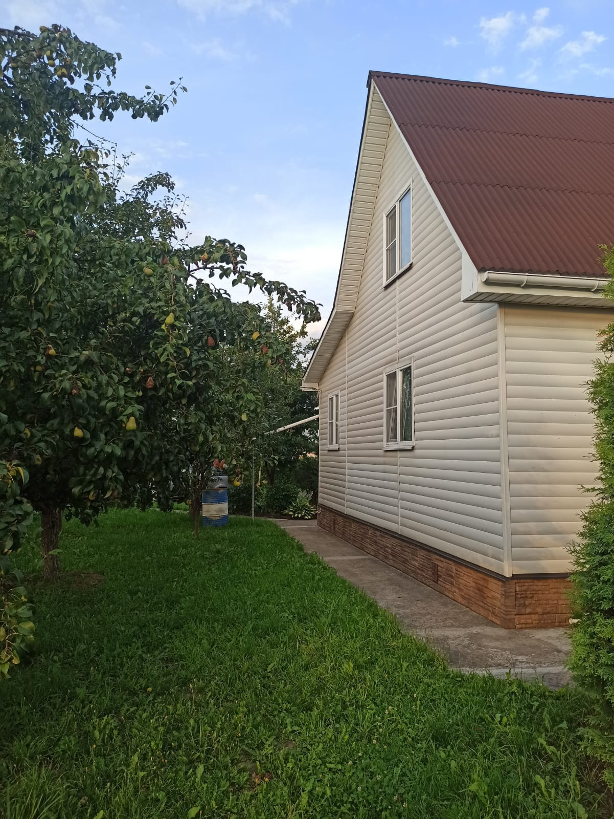 На участке : беседка, бытовка ( оборудована под летнюю кухню), сарай с навесом, много деревьев, кустарников, ельников и т.д.