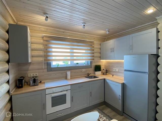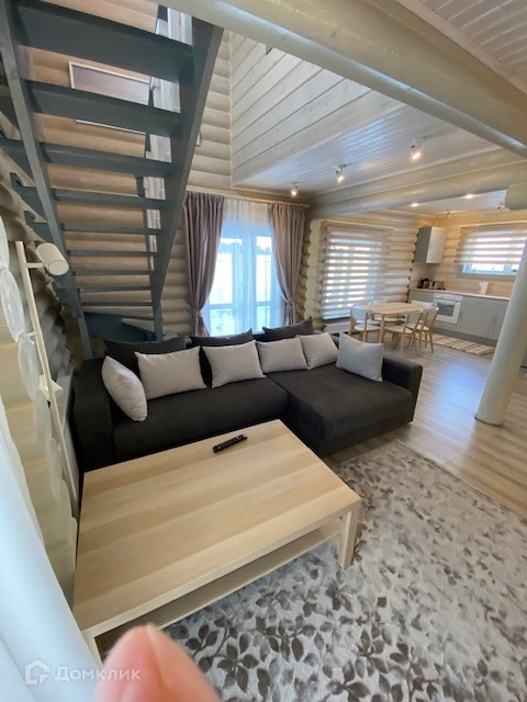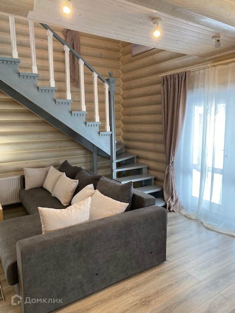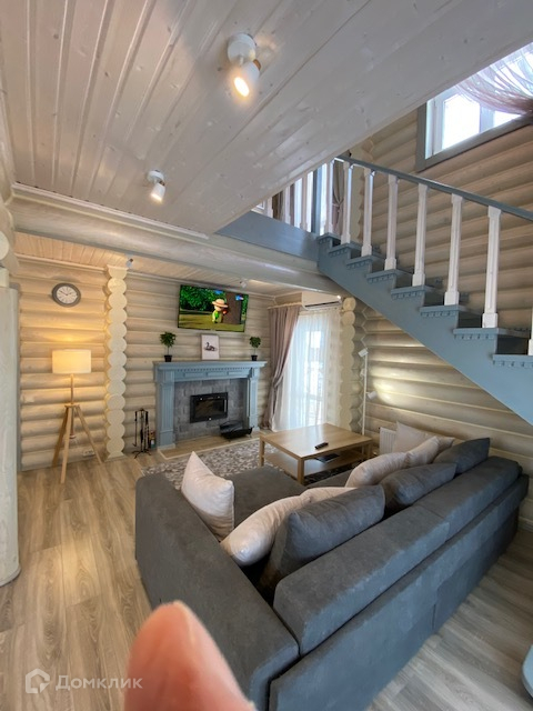 На первом этаже дома прихожая с гардеробом, санузел с душевой, котельная с прачечной и выходом в настоящую шикарную русскую баню. Просторная кухня-гостинная с великолепным дровяным камином и красивой лестницей из натурального дерева, ведущей на второй этаж.