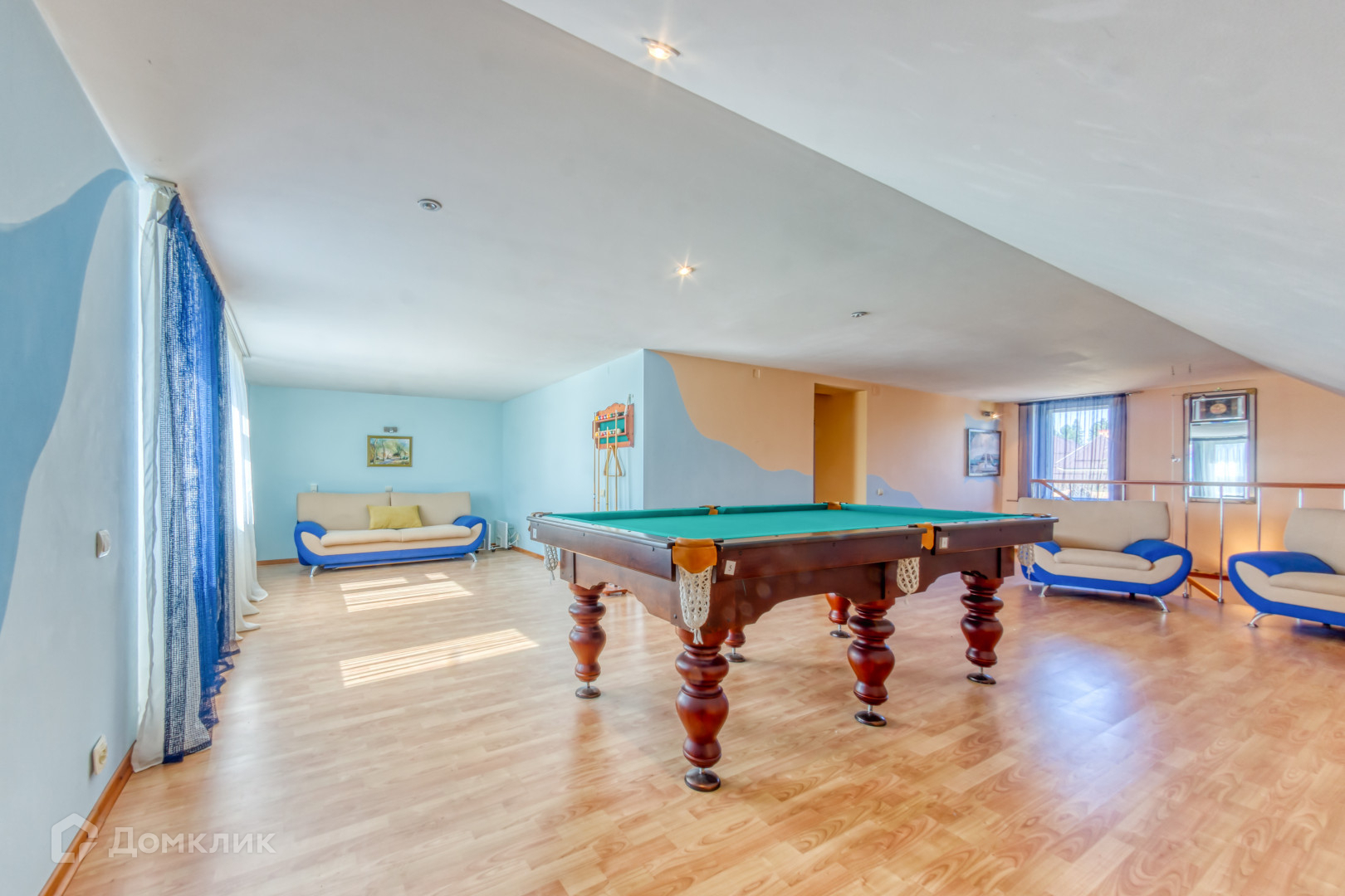 3 этаж: гостиная с бильярдом, спальня, раздельный с/у, очень большая гардеробная.