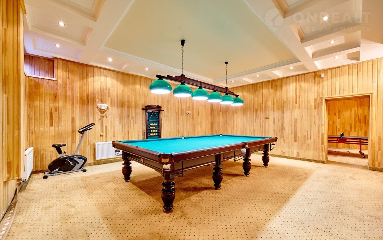 На цокольном этаже дома находятся две замечательные комнаты отдыха. Одной из комнат является бильярдная - комната смежная со всеми остальными комнатами данного этажа и с лестницей, ведущей на первый этаж. Вторая комната с настольным теннисом. Помимо этого имеется кладовая и оборудованная котельная.