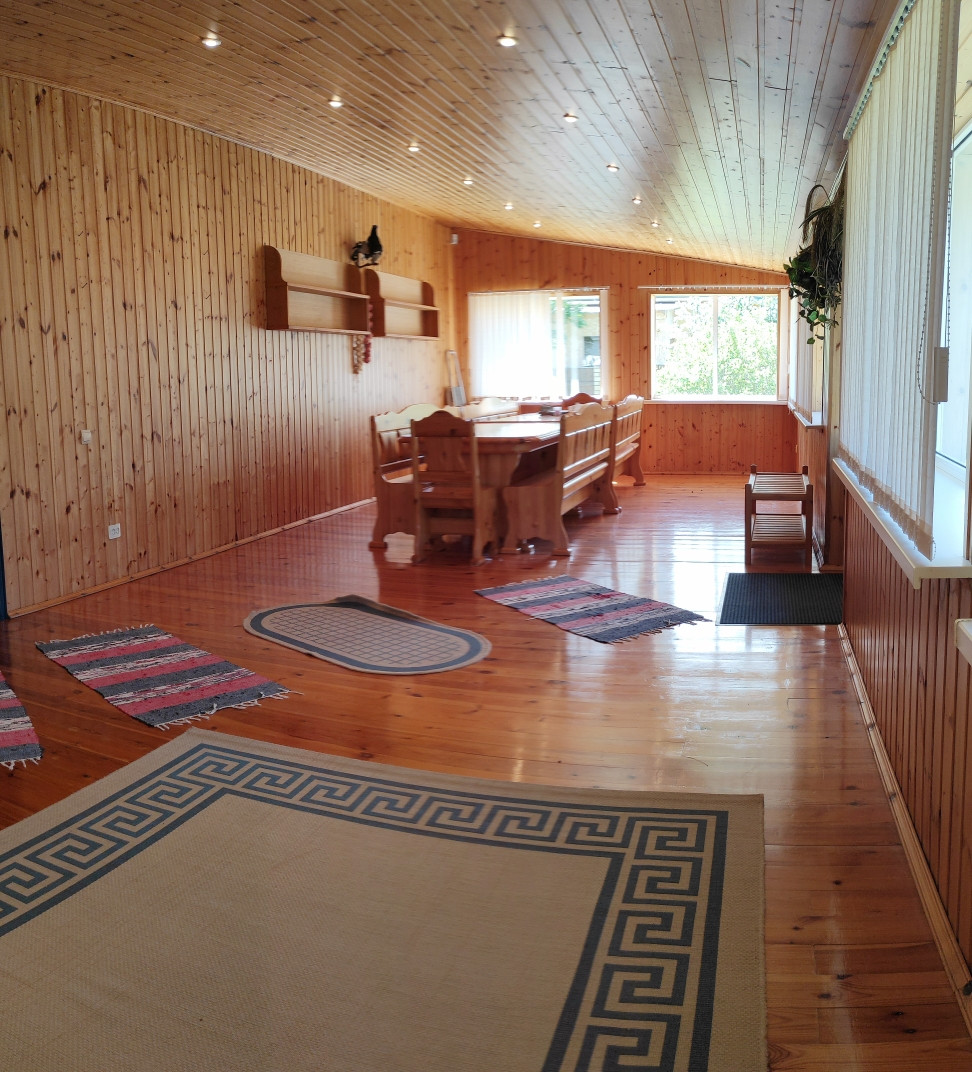 второй этаж: зал, две спальные комнаты  с видом на широкий разлив реки, где можно встречать рассветы и провожать закаты;