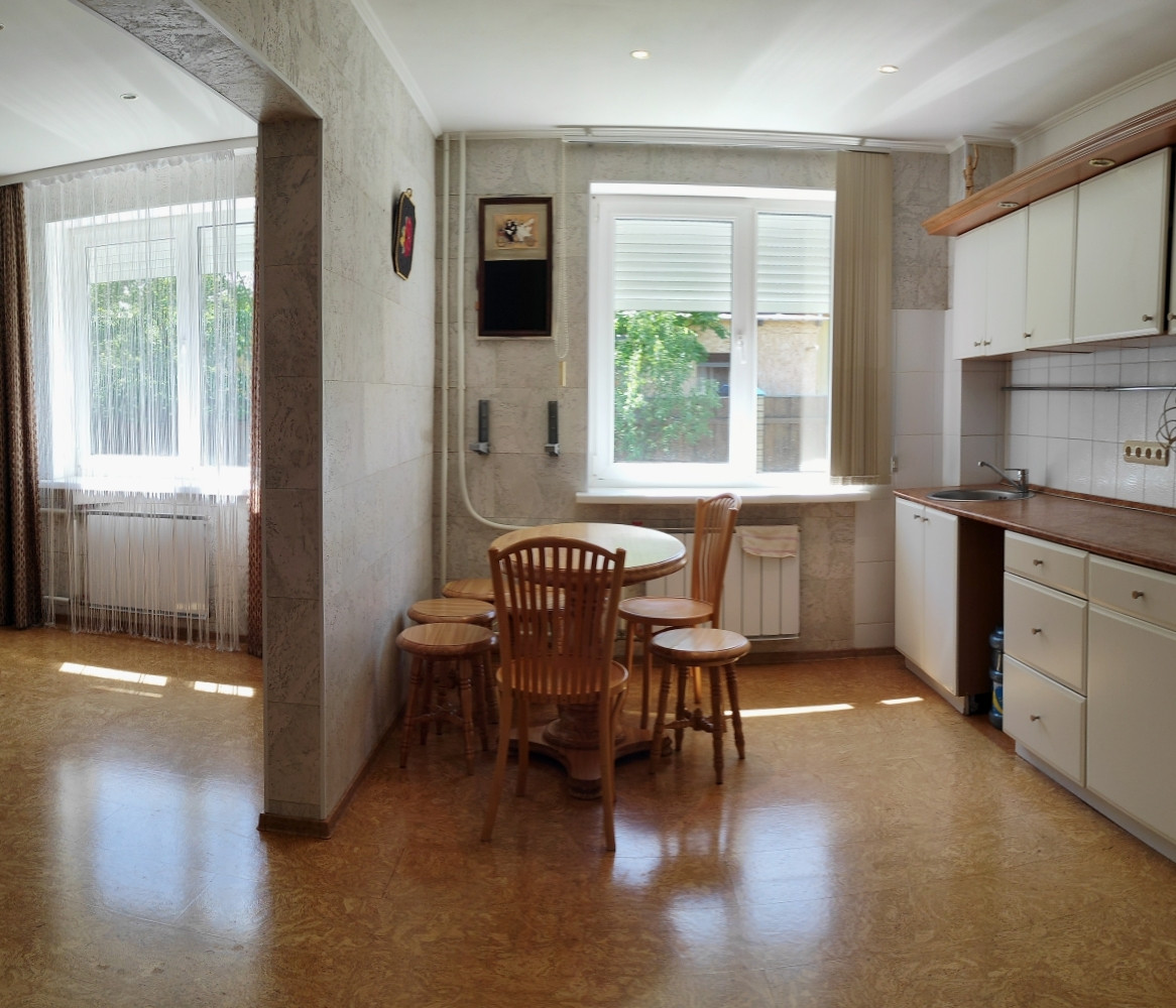 На первом этаже дома  расположены просторная гостиная с камином, который топится дровами и создает уют,  кухня- столовая,  терраса и веранда с большим  столом для дружной семьи и их гостей; санузел и котельная. Красивая добротная лестница из натурального дерева ведёт на