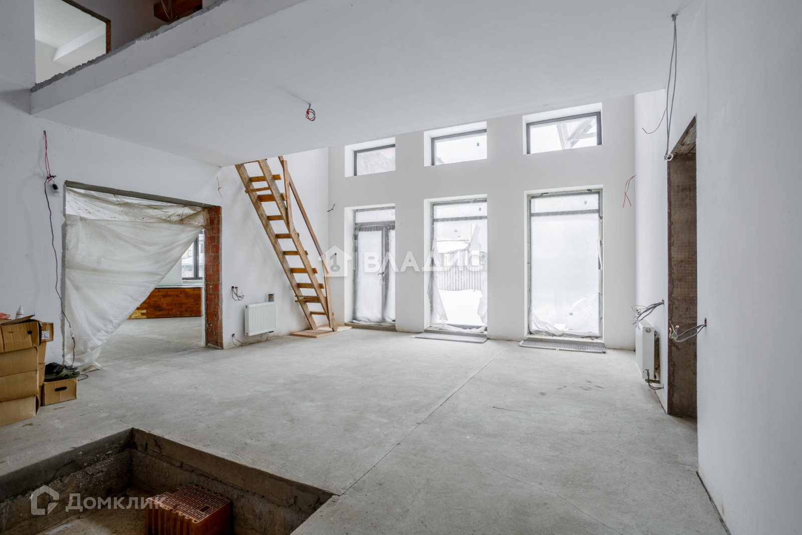 ж/б перекрытия, полы-бетонная стяжка высота потолков 3 метра на первом этаже, 3-4 метра на втором