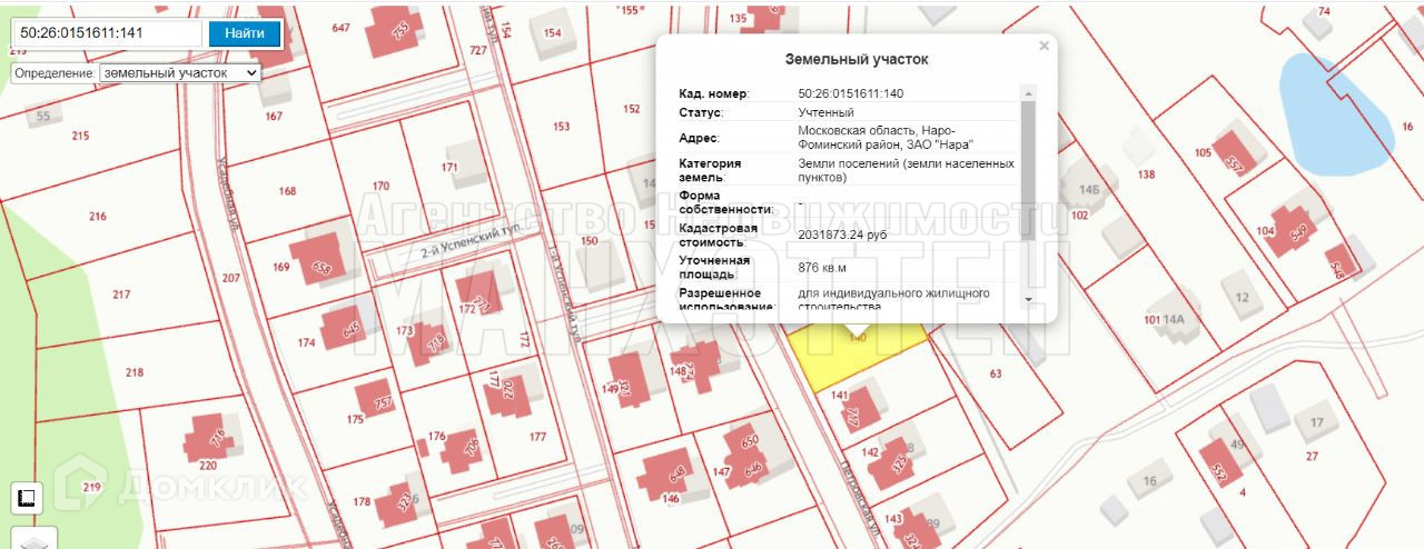 кадастровый номер 50:26:0151611:140