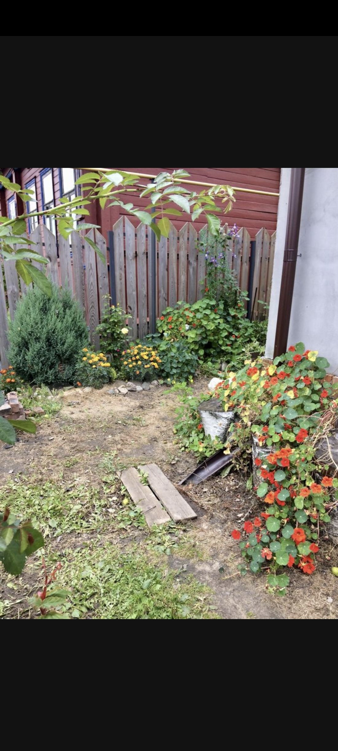 Посажены декоративные Туи , можжевельник, много разных цветов.