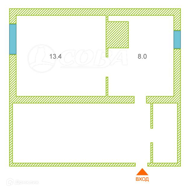 Общая площадь 38 м2