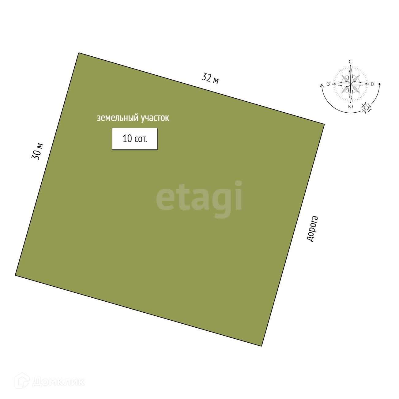 - Продаётся земельный участок,ровной,прямоугольной формы,10 соток(30 м на 32 м).