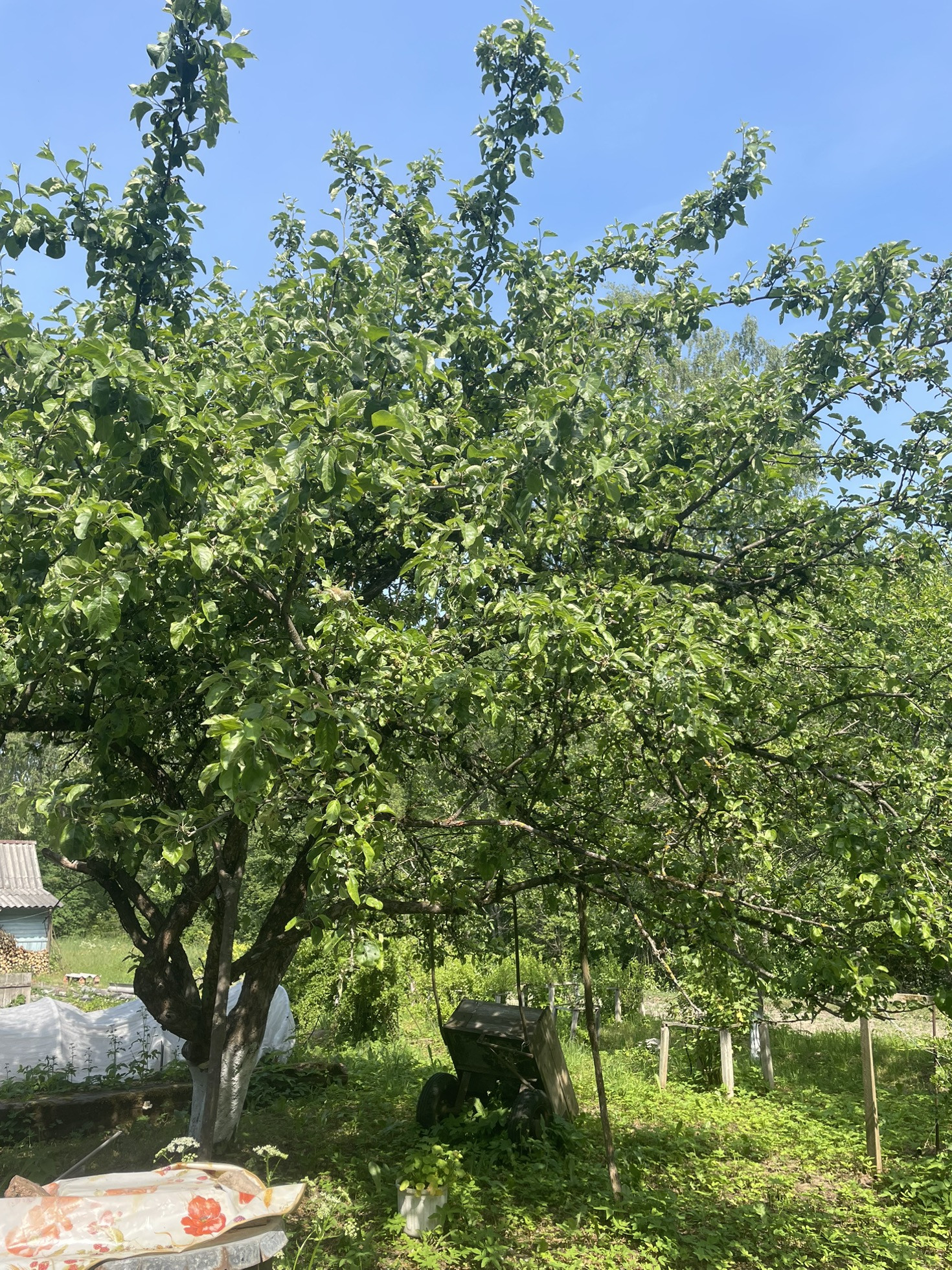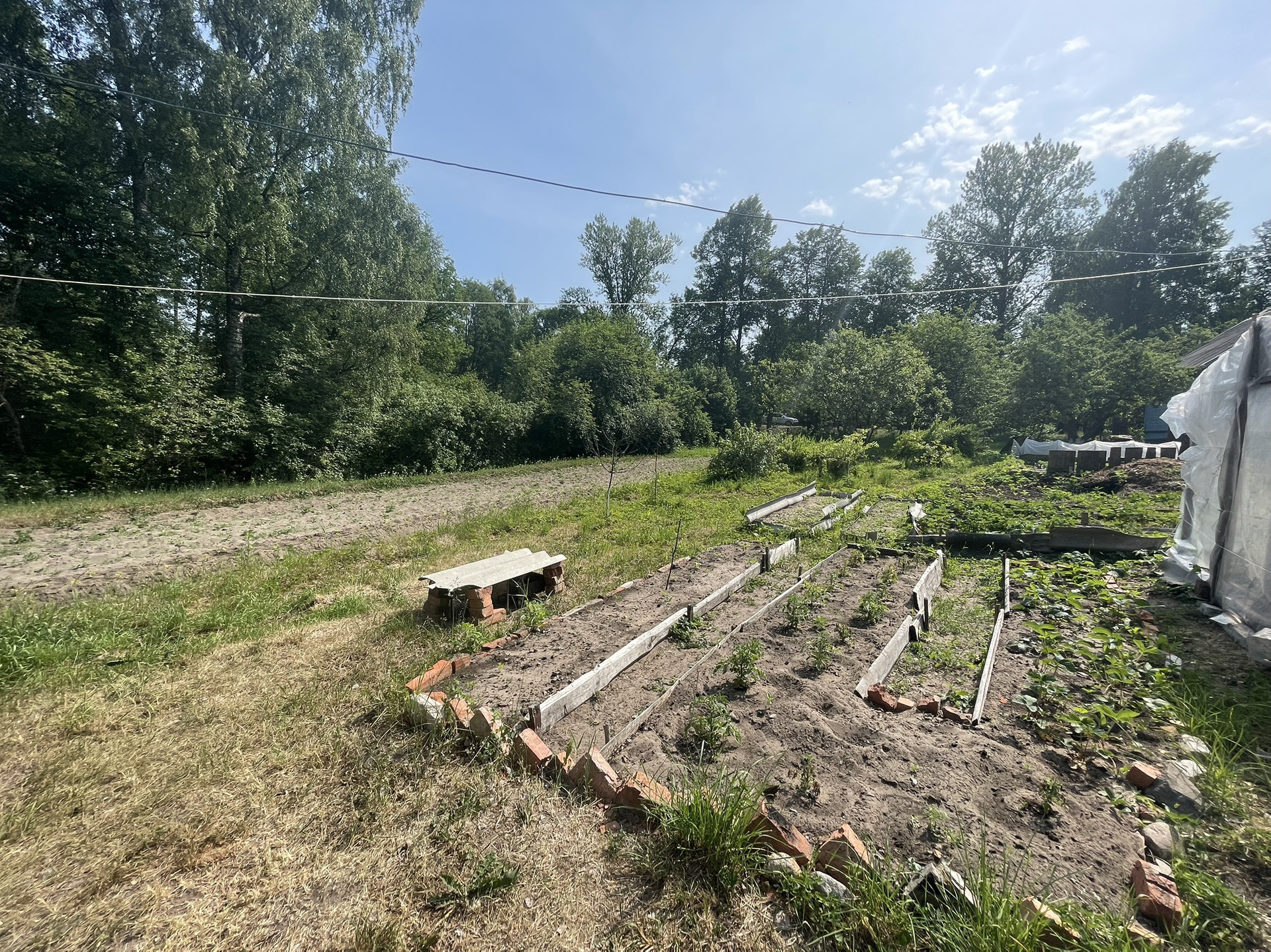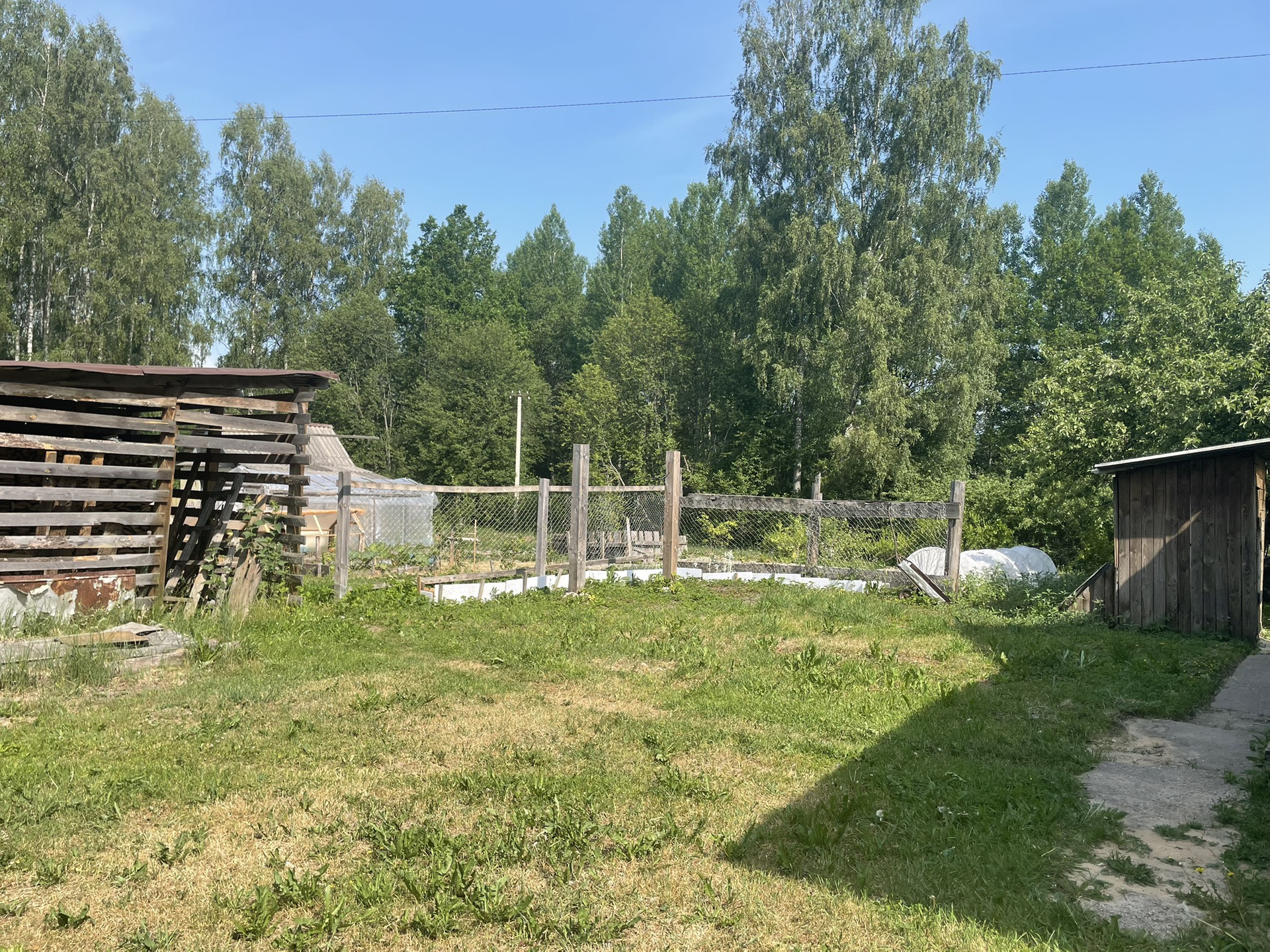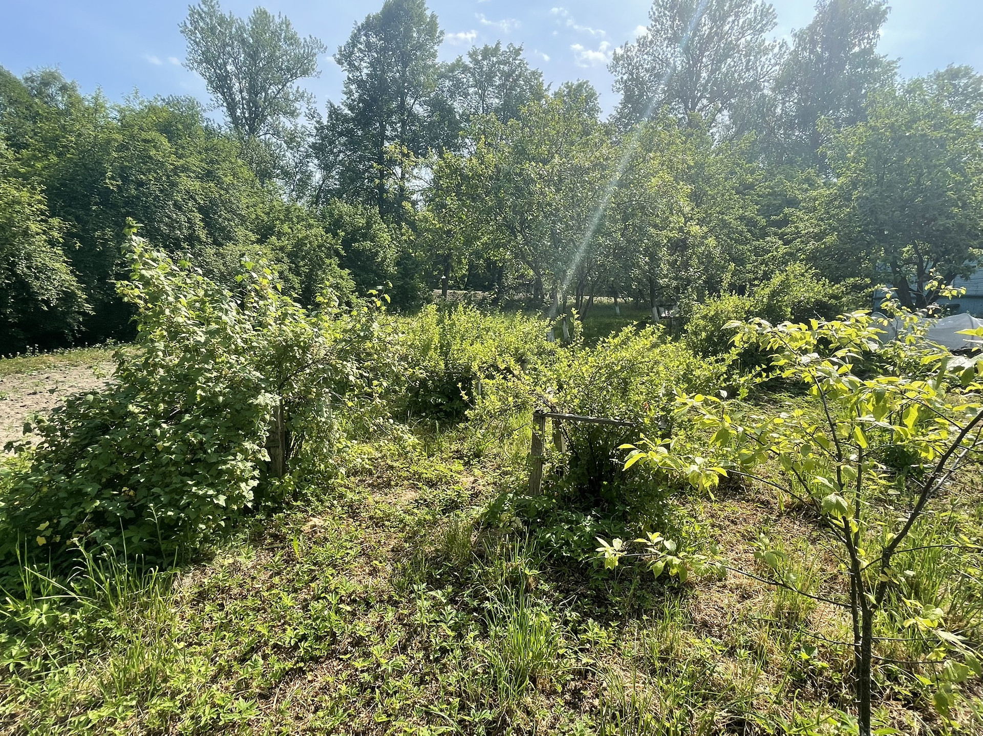 На участке теплица, сад из яблонь, кусты смородины, малины, сливы, крыжовника.