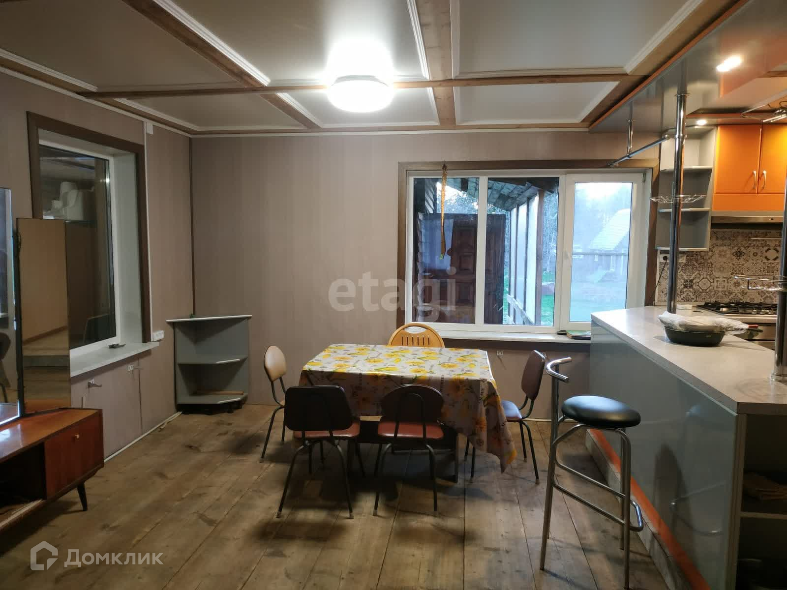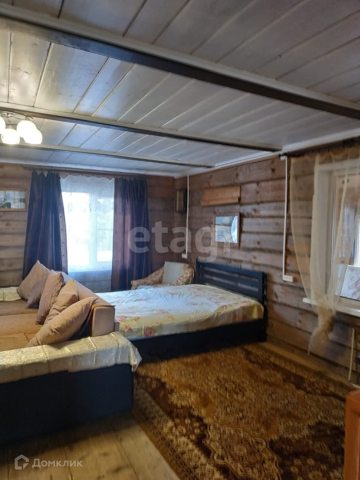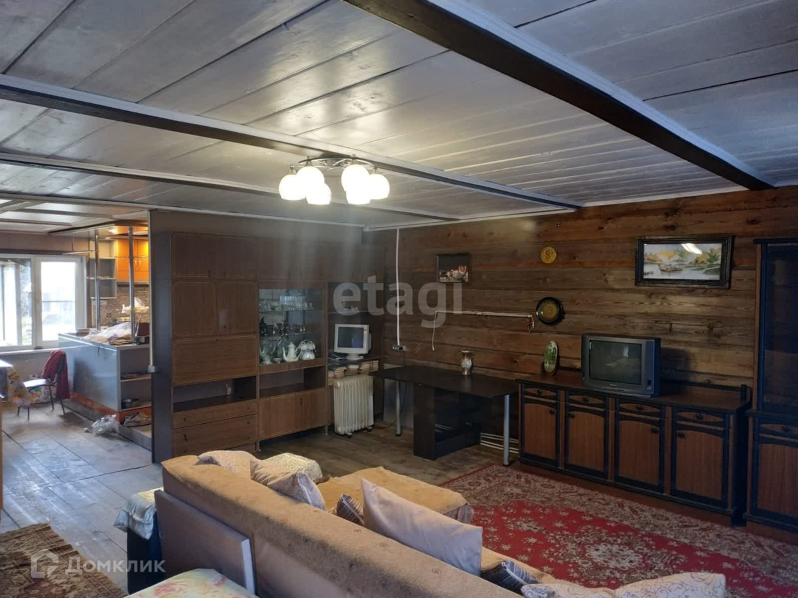 В доме ремонт под дерево. Мягкая и корпусная мебель, встроенная кухня. Фундамент- лента, окна-ПВХ частично, кровля-металлл.