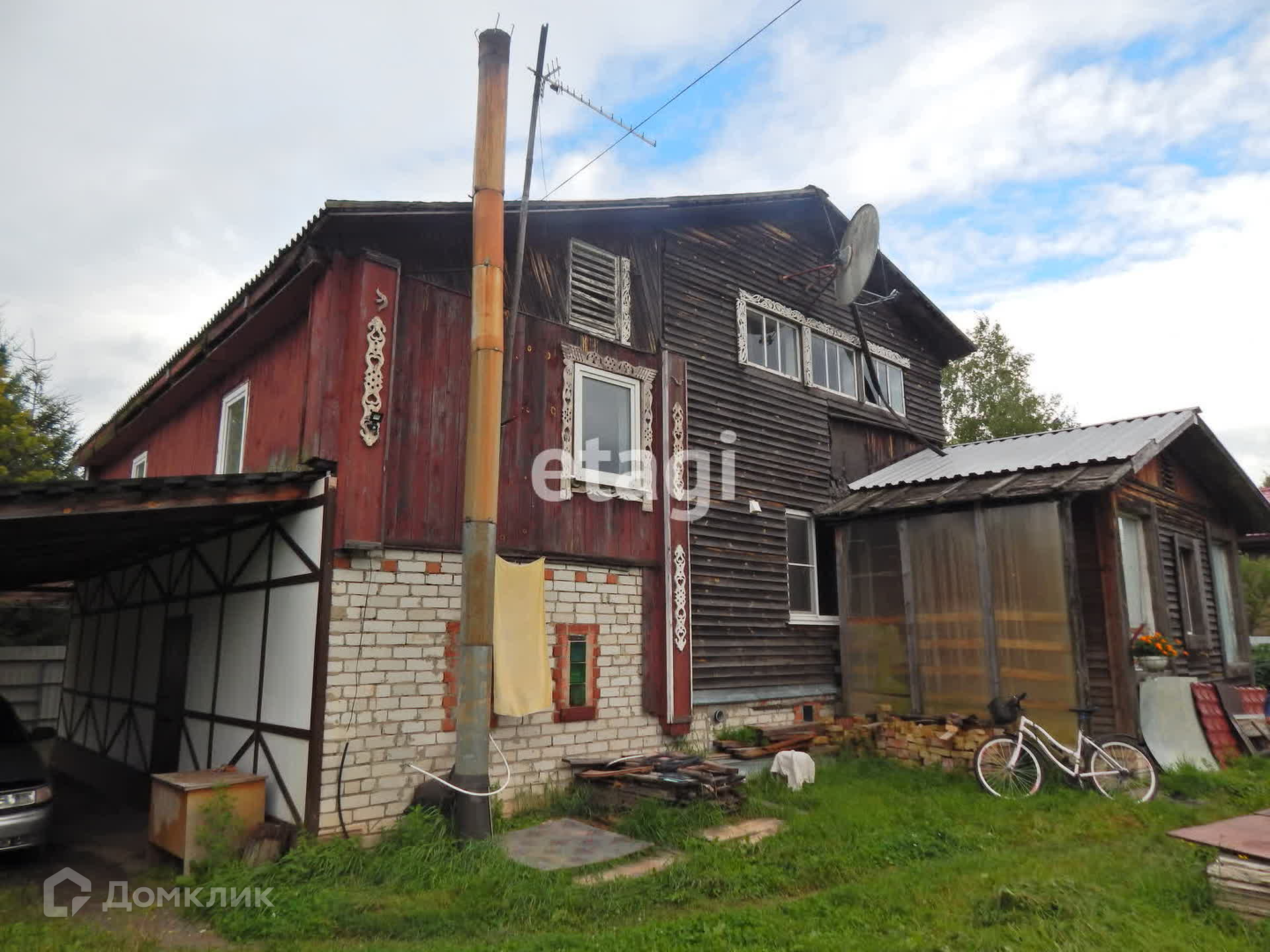 Дом Общ - 210 кв.м., материал стен-бревно (сруб)+ утепленный каркасно-щитовой 2 этаж + кирп пристройка: