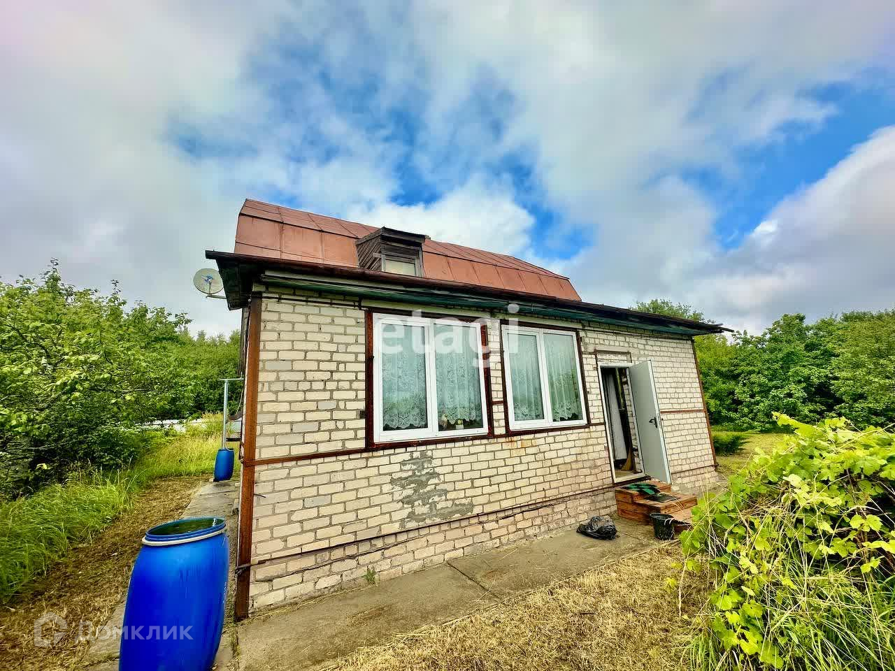 На территории также располагается баня с предбанником и парной, которая станет отличным местом для отдыха. Хотя крыша парной и печь требуют ремонта, это прекрасная возможность создать свой собственный уголок релаксации. Кроме того, на участке находятся несколько металлических бытовок, которые можно использовать для хранения инструментов и хозяйственных принадлежностей.