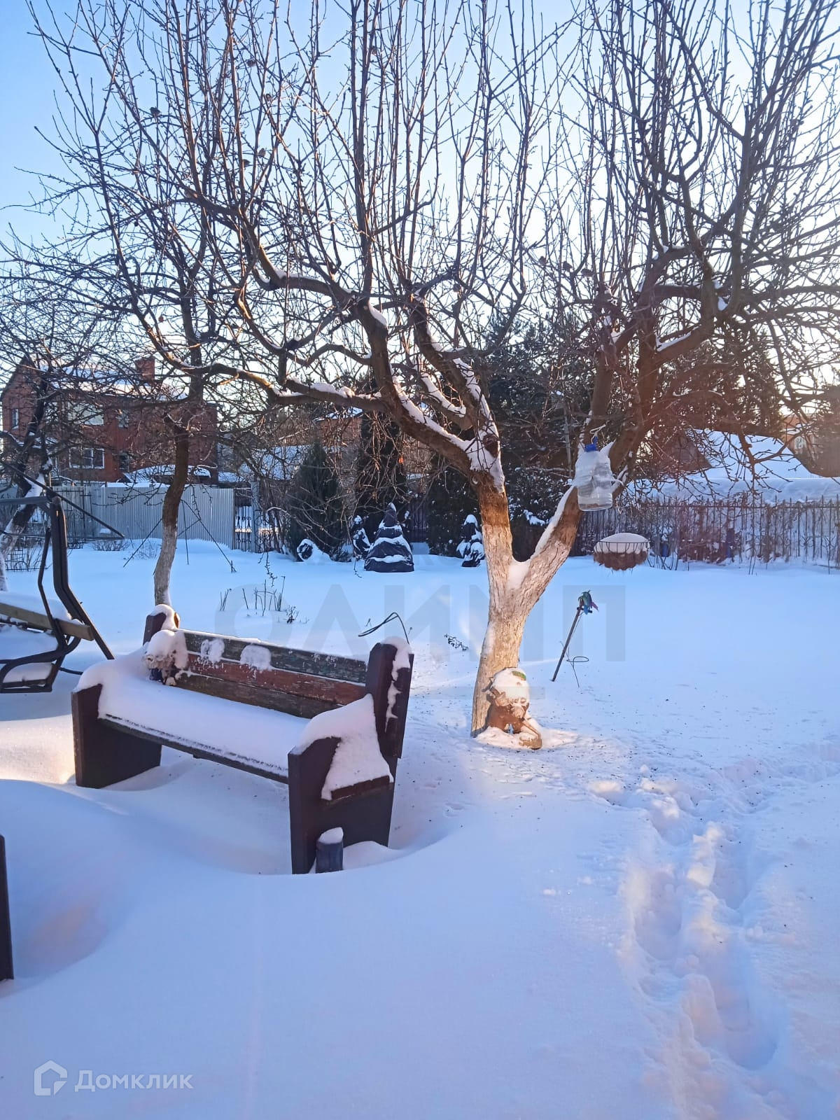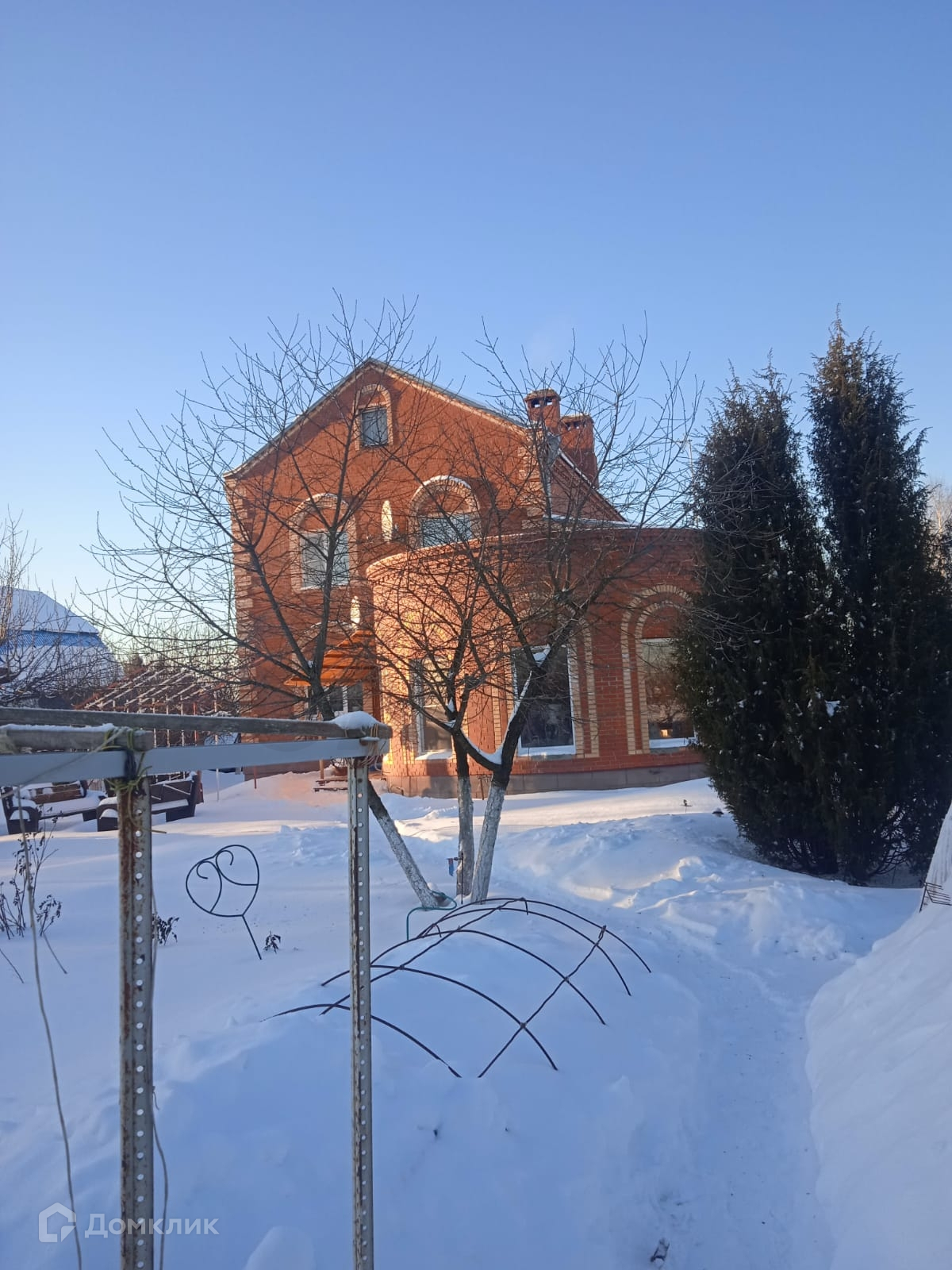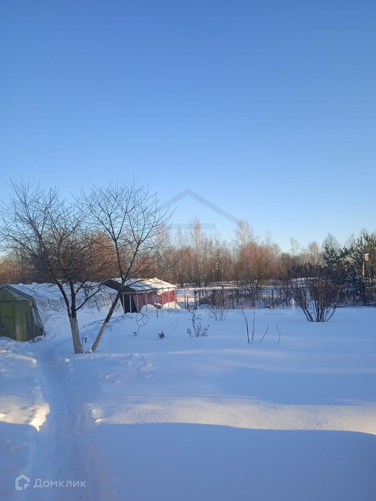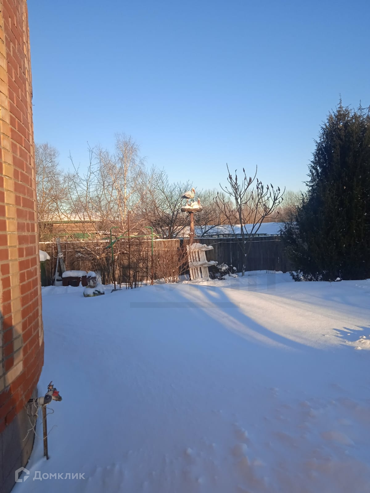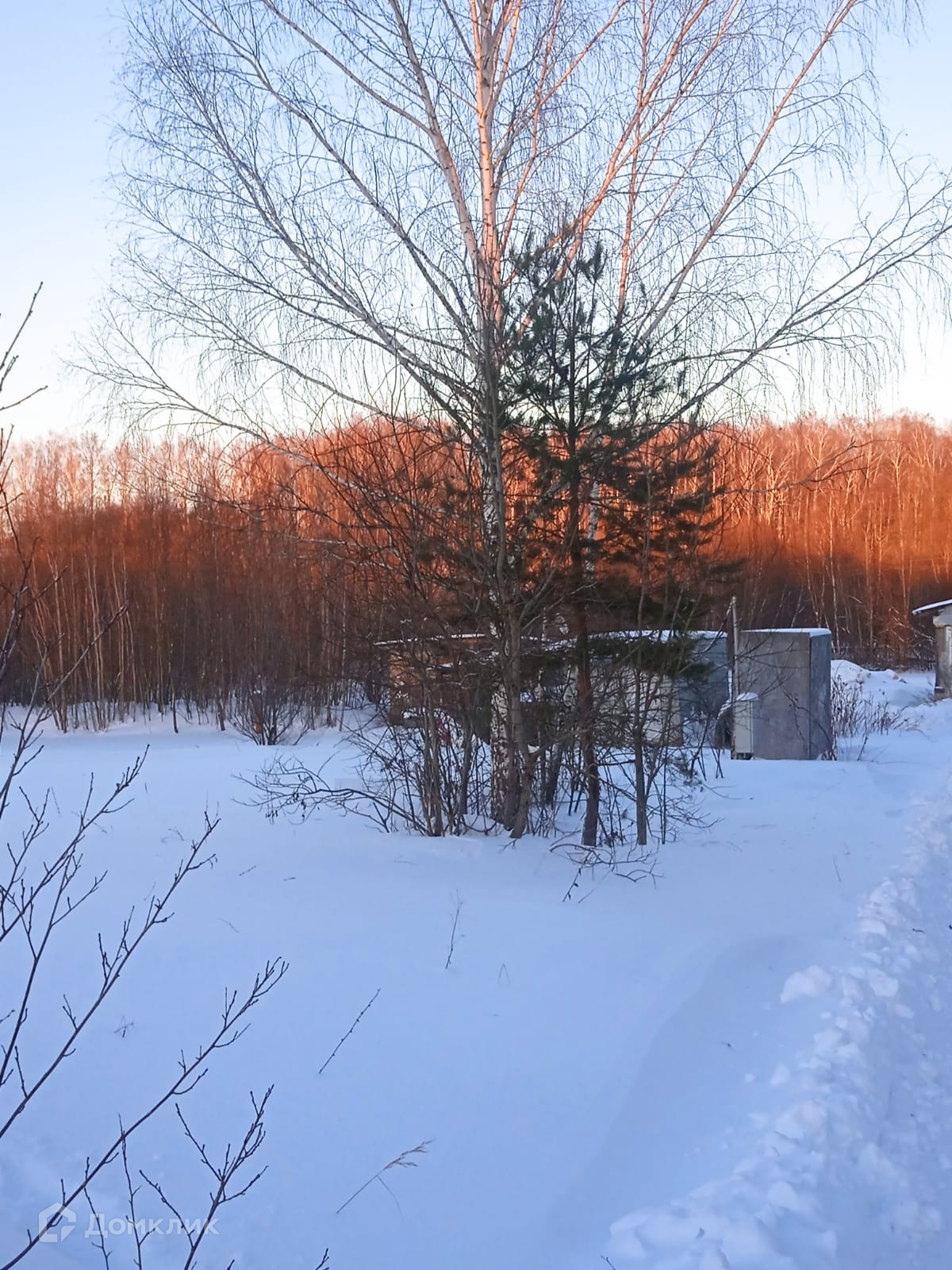 Задняя сторона двора выходит на открытый участок с лесополосой и отсутствием соседей.