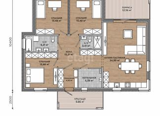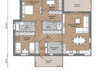 Предлагается дом по проекту GAGARIN: одноэтажный дом с плоской кровлей для постоянного проживания семьи состоящей из 3-4 человек. Дом имеет площадь 109 кв.м. В проекте предусмотрены три спальни и просторная гостиная, объединенная с кухонной зоной. Гостиную от 12-метровой террасы отделяет большое панорамное остекление. Поэтому естественный свет попадае... |