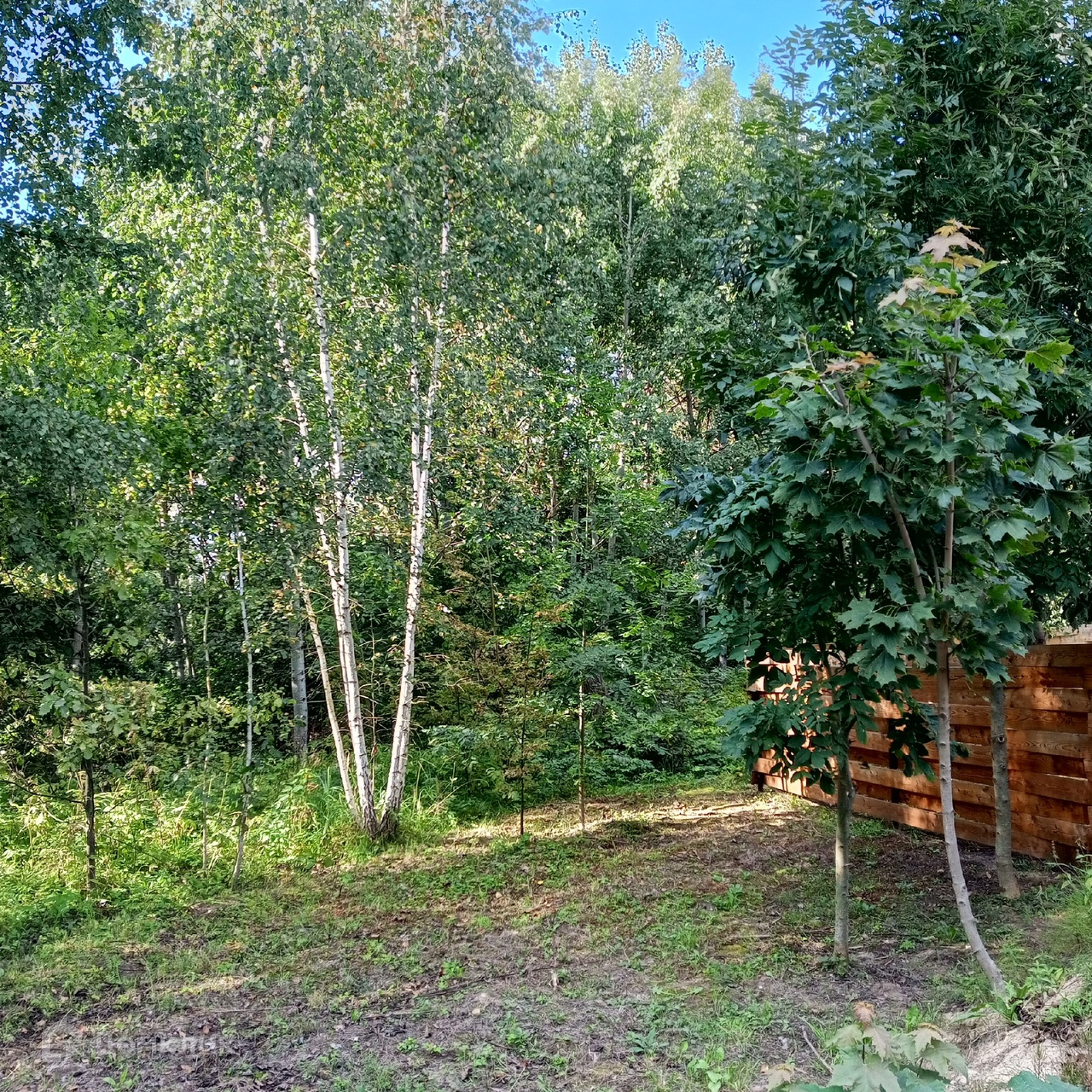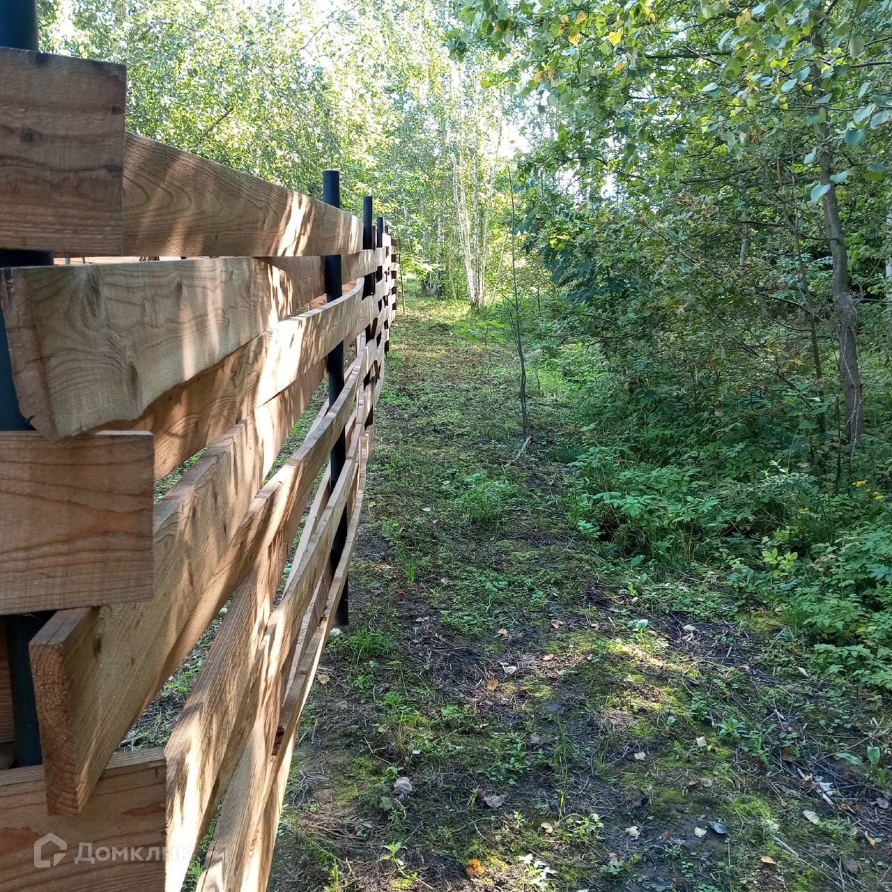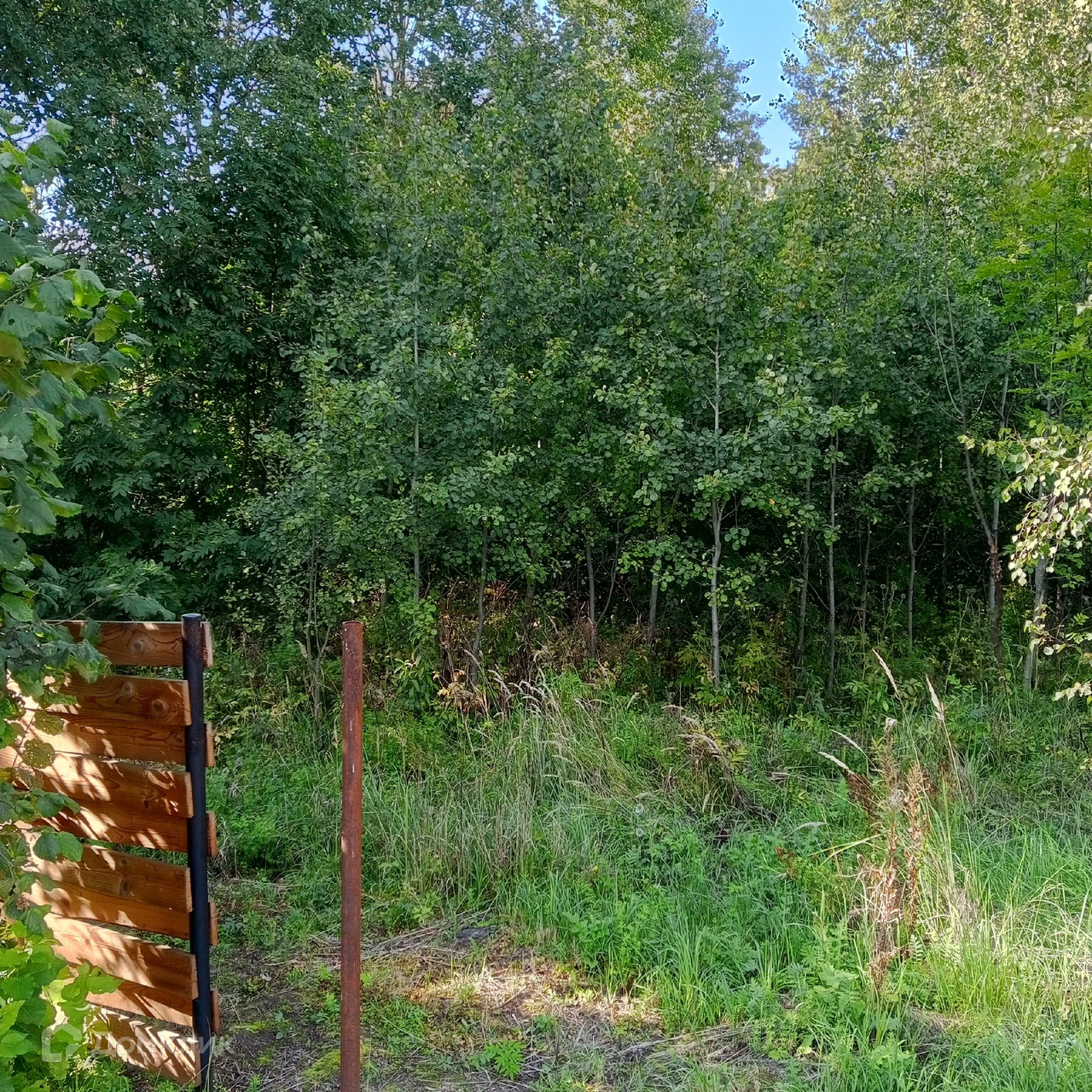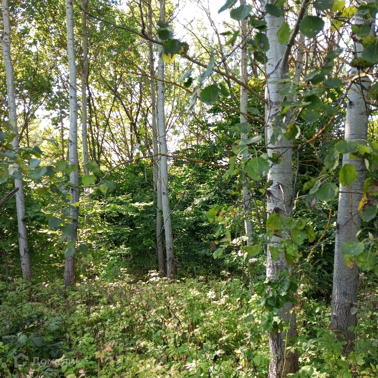 Тихое место в лесу, вокруг сосны, березы, осина, дубы, липа, орешник на границе участка.