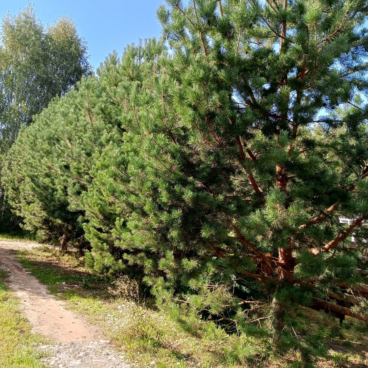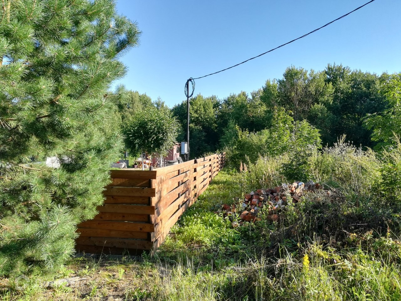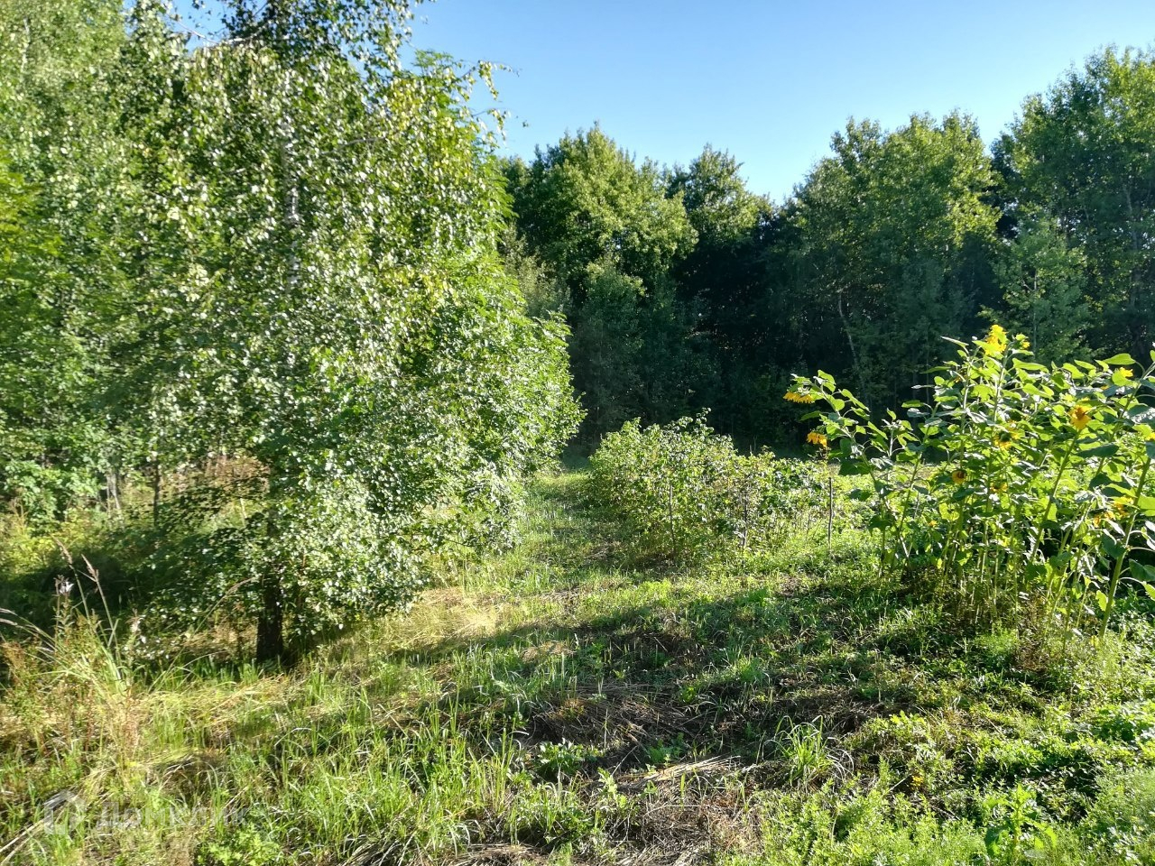 Тихое место в лесу, вокруг сосны, березы, осина, дубы, липа, орешник на границе участка.