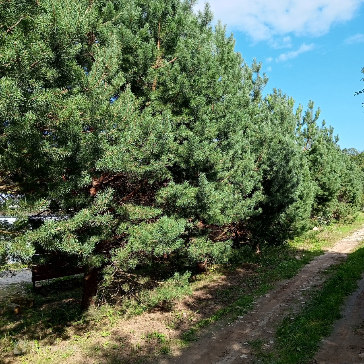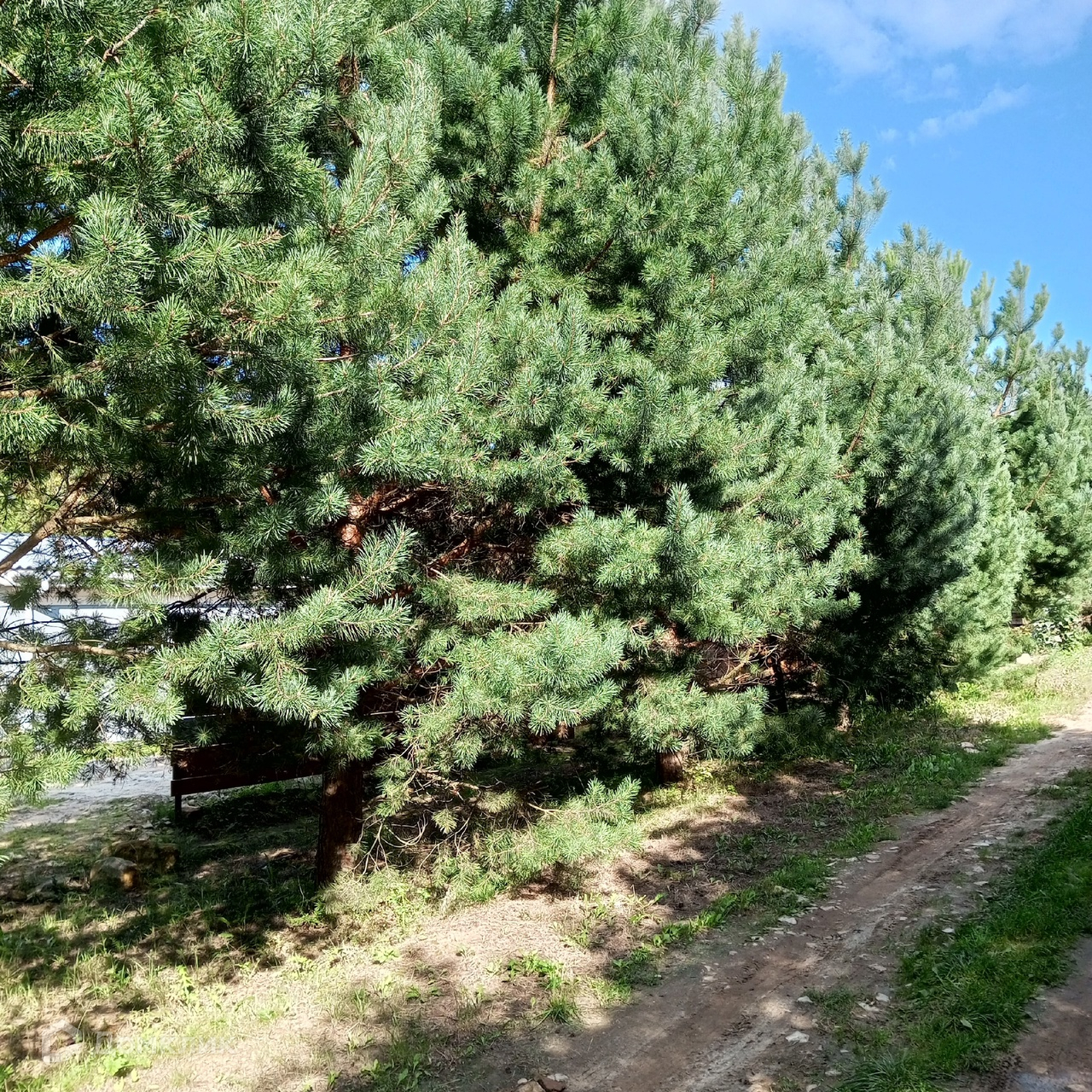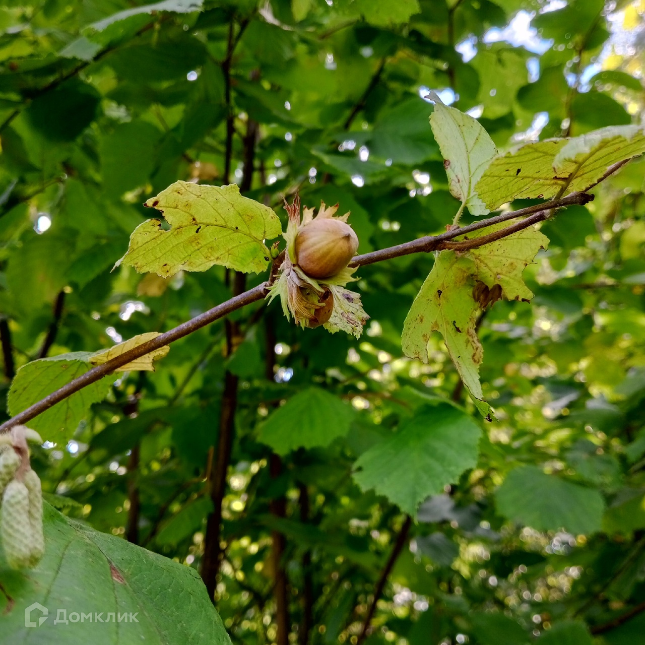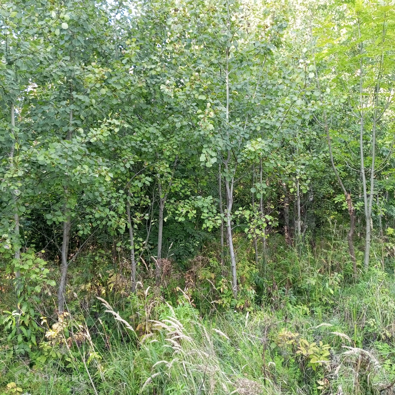 Тихое место в лесу, вокруг сосны, березы, осина, дубы, липа, орешник на границе участка.