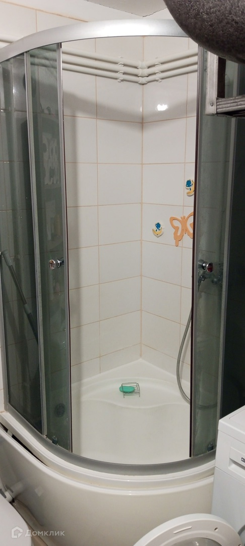 В ванной душевая кабинка, раковина, унитаз, место для стиральной машины, водяной теплый пол.