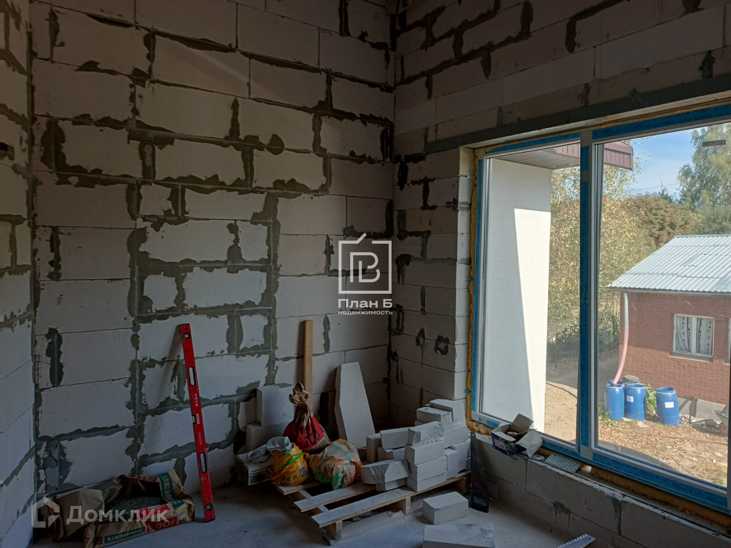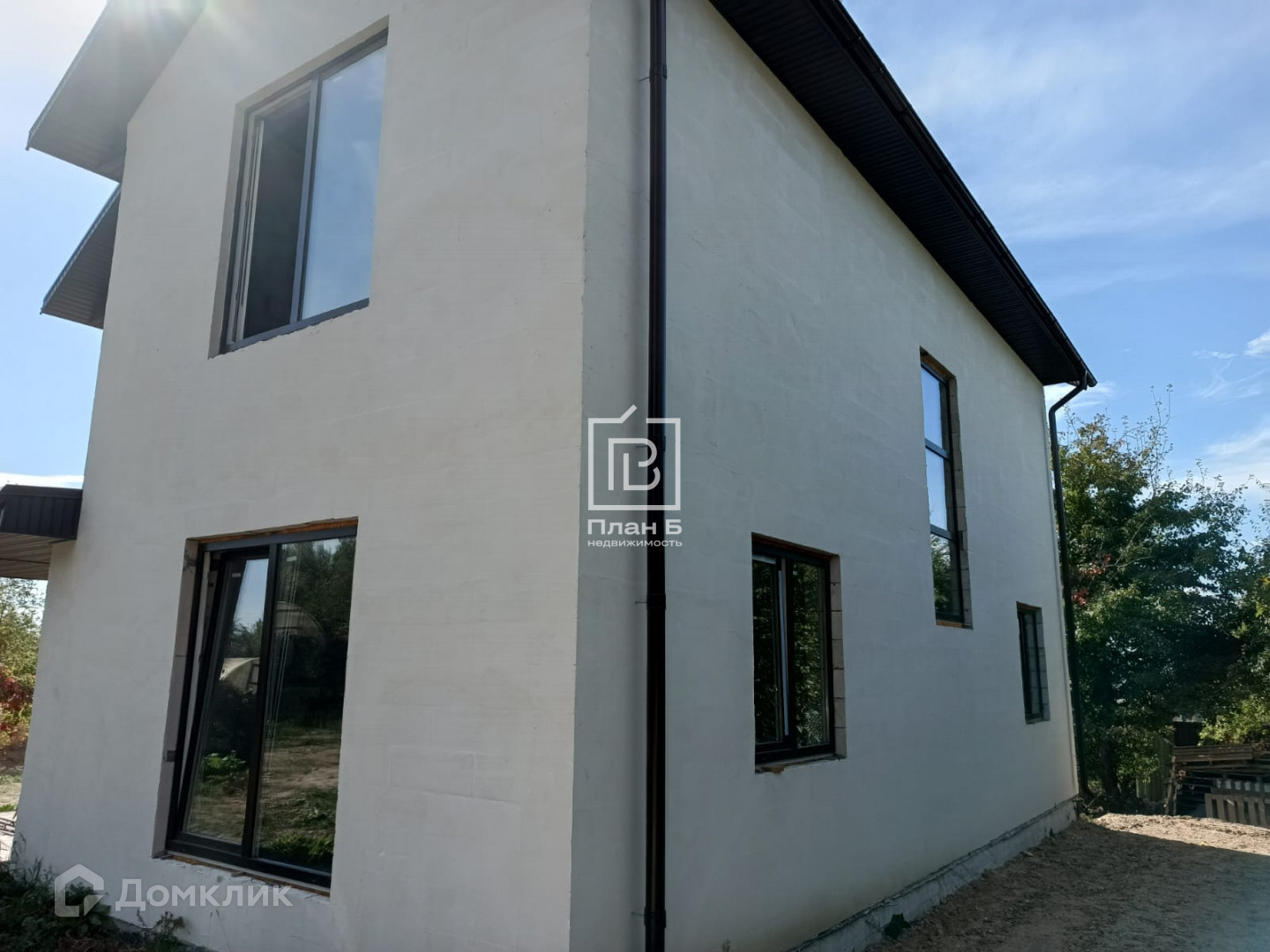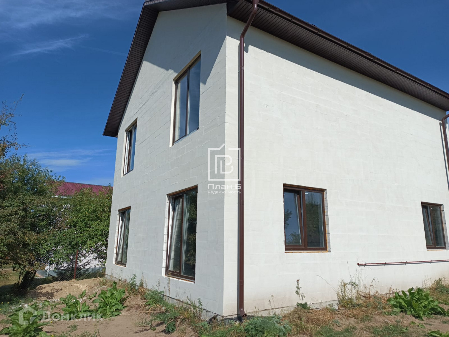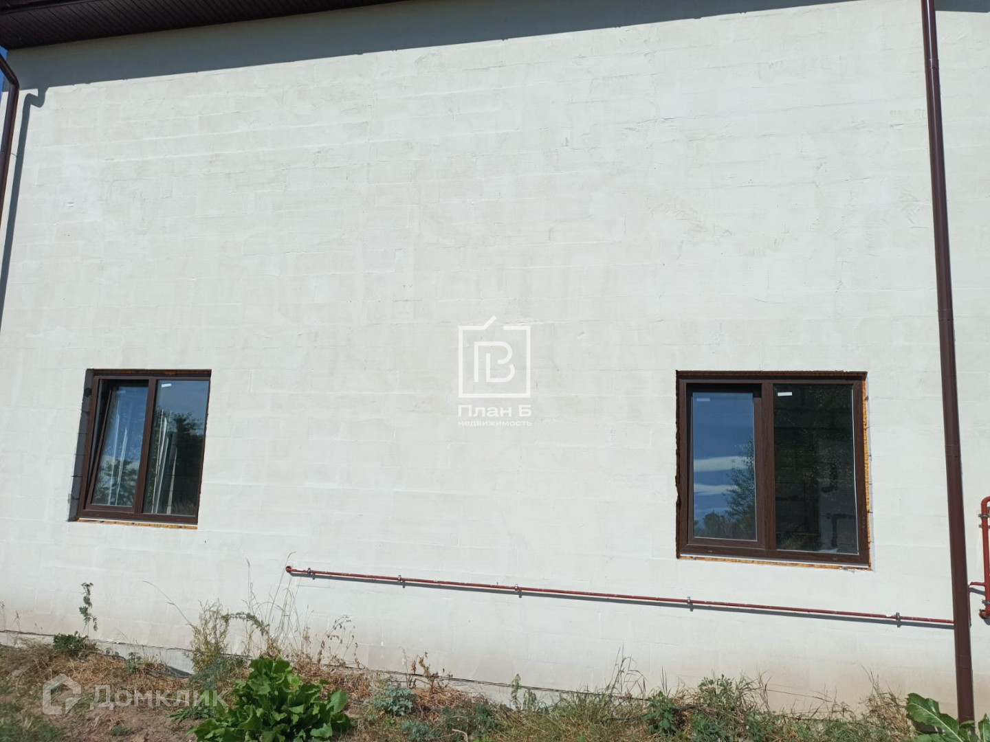 Дом 2024 года постройки из газоблока D-500, фундамент — монолитная плита. Фасад под отделку «короед». Установлены двухкамерные стеклопакеты.