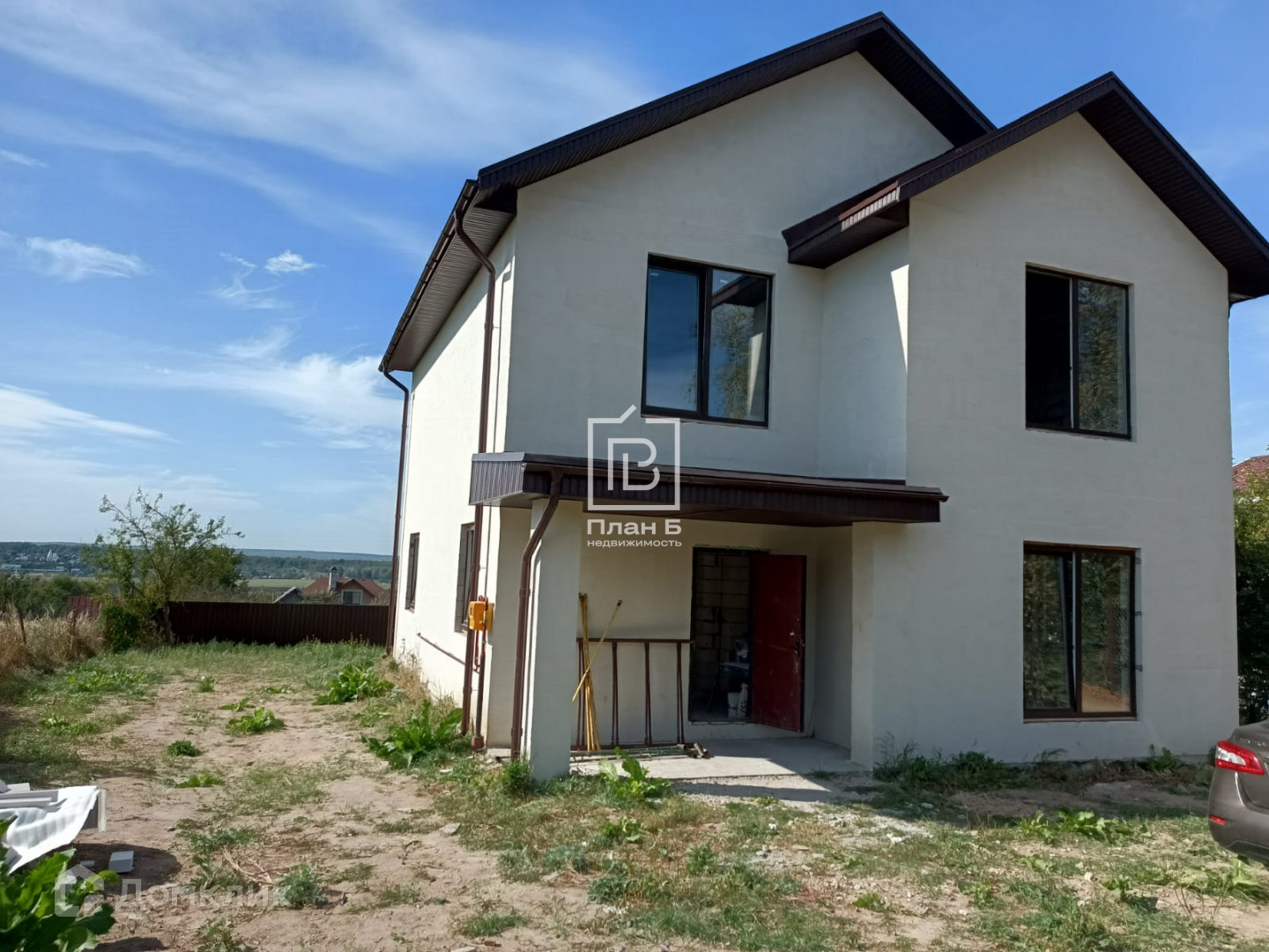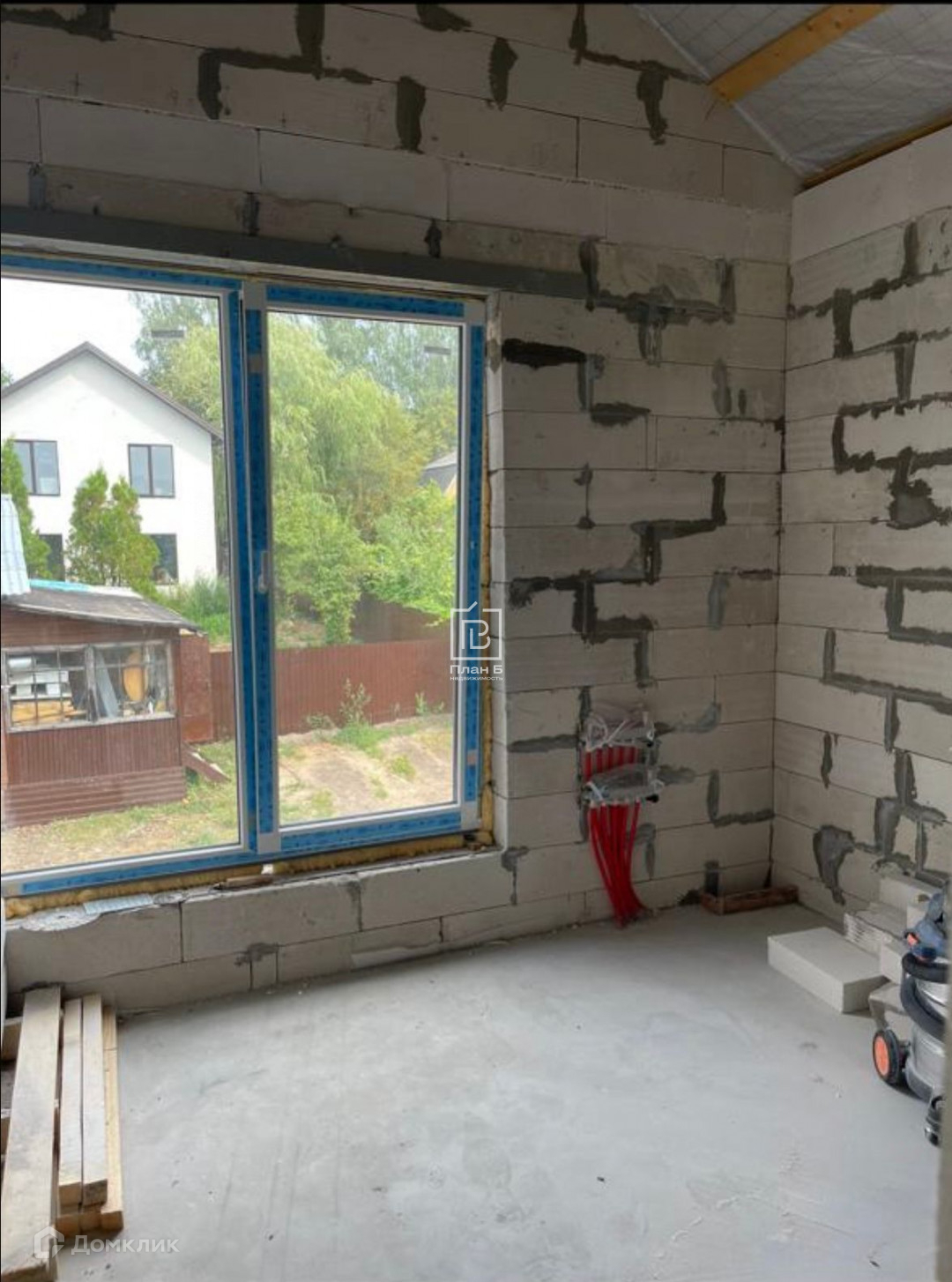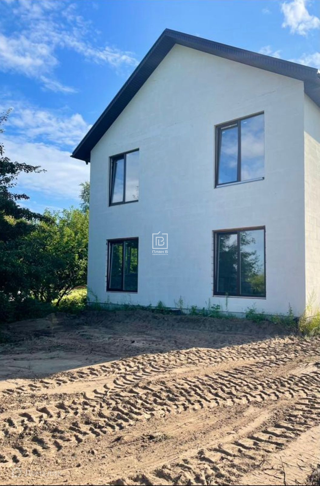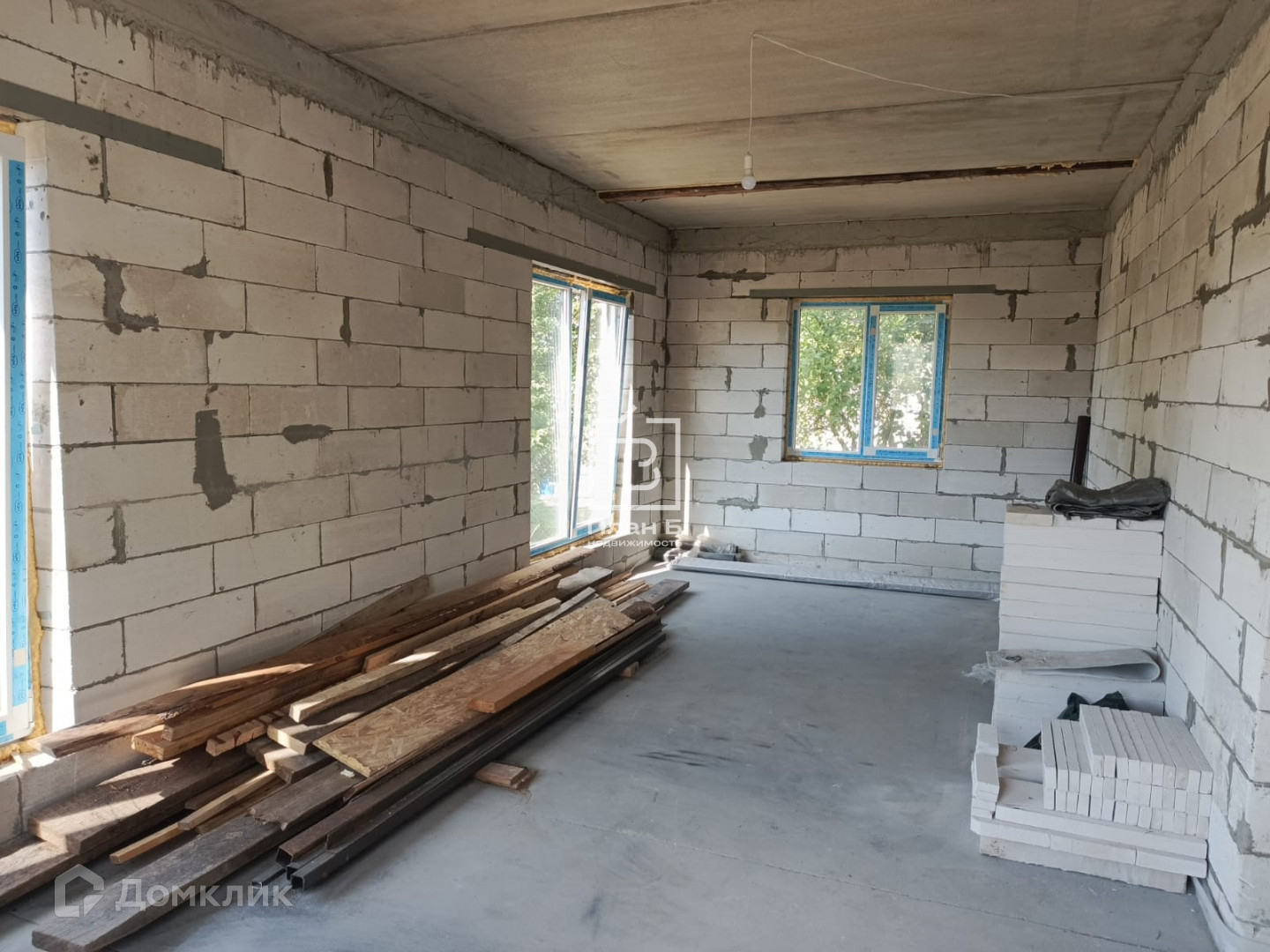 Дом 2024 года постройки из газоблока D-500, фундамент — монолитная плита. Фасад под отделку «короед». Установлены двухкамерные стеклопакеты.