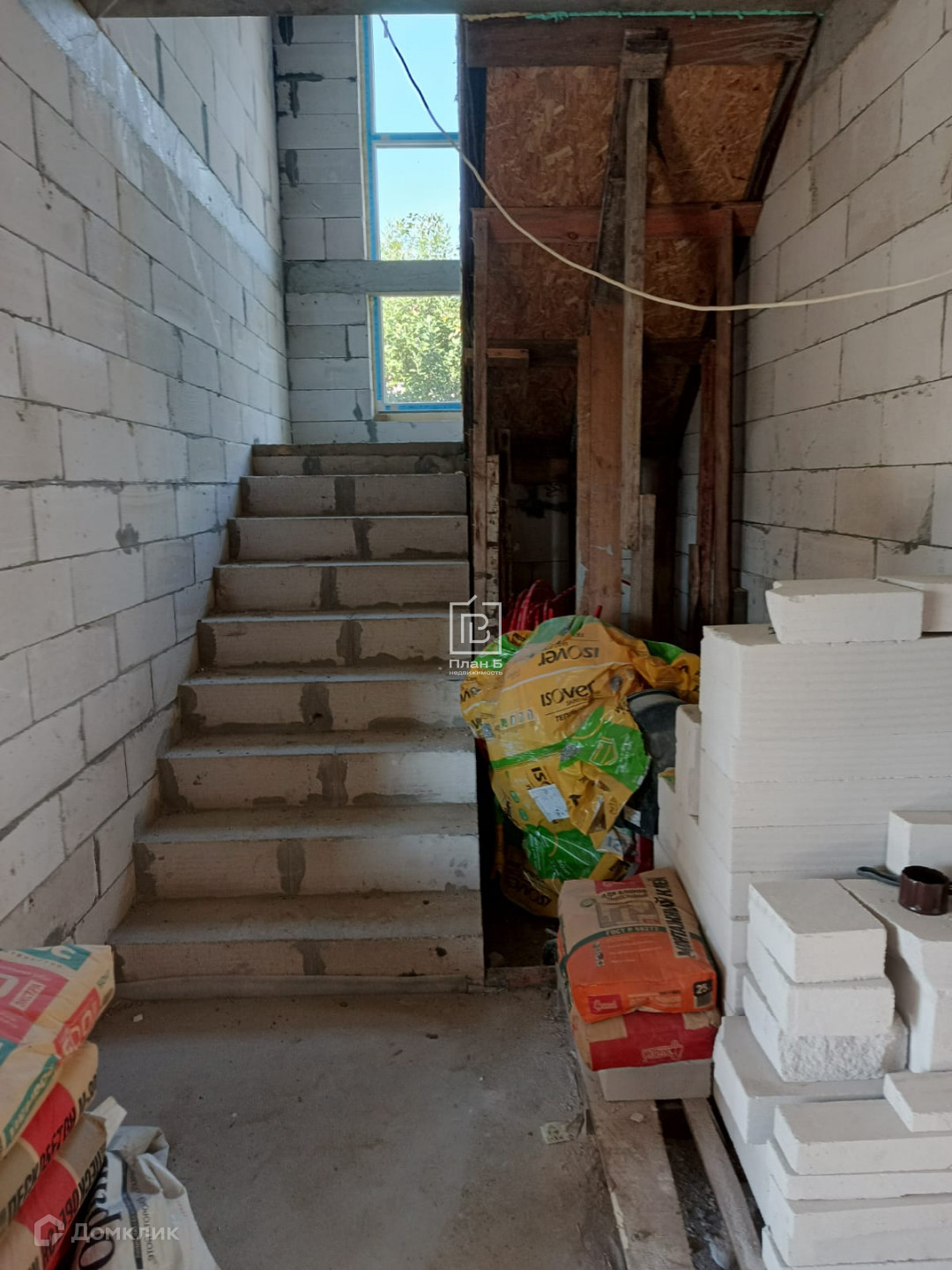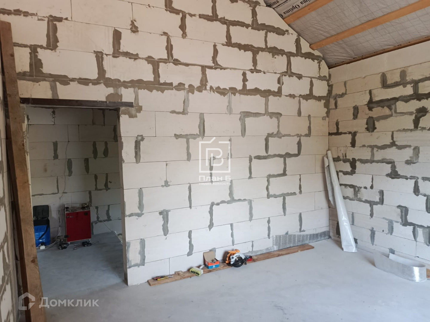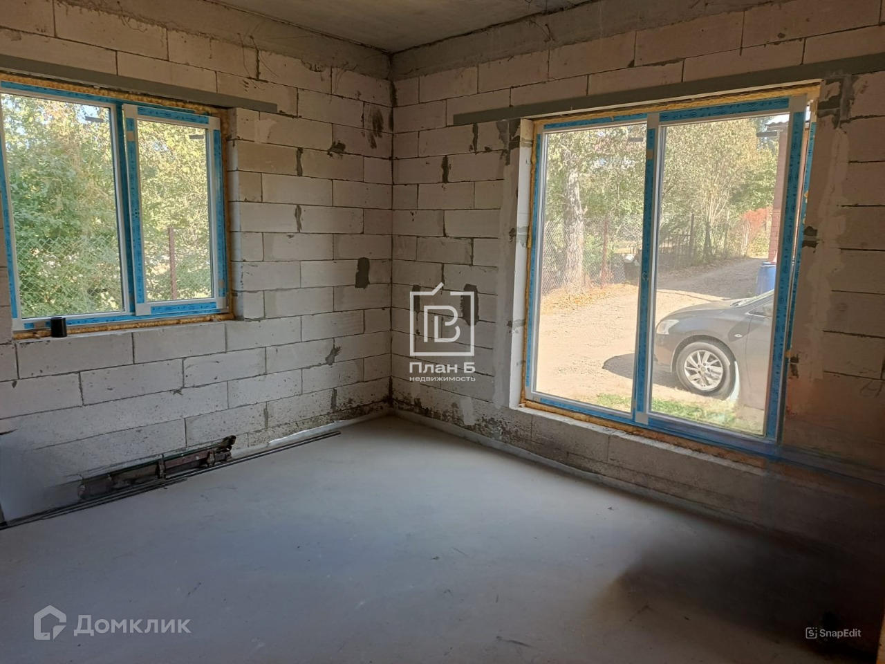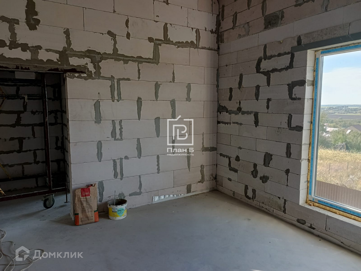 Дом 2024 года постройки из газоблока D-500, фундамент — монолитная плита. Фасад под отделку «короед». Установлены двухкамерные стеклопакеты.